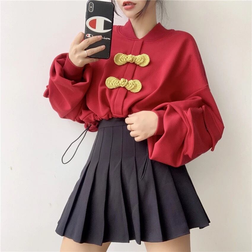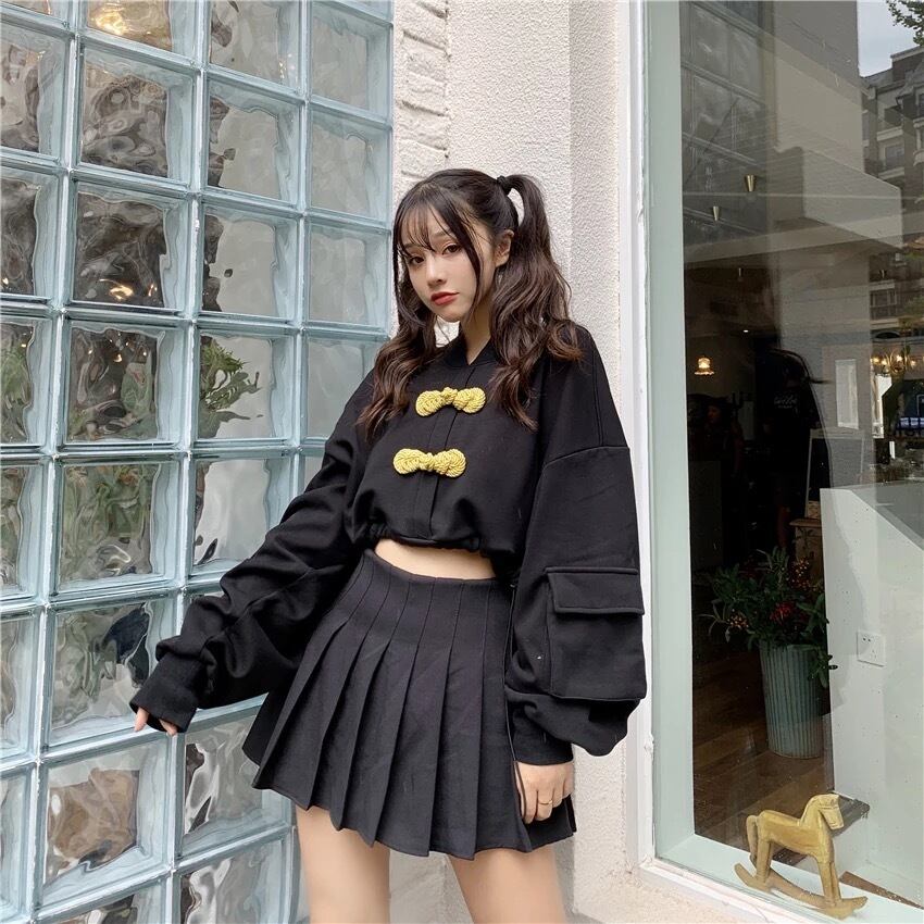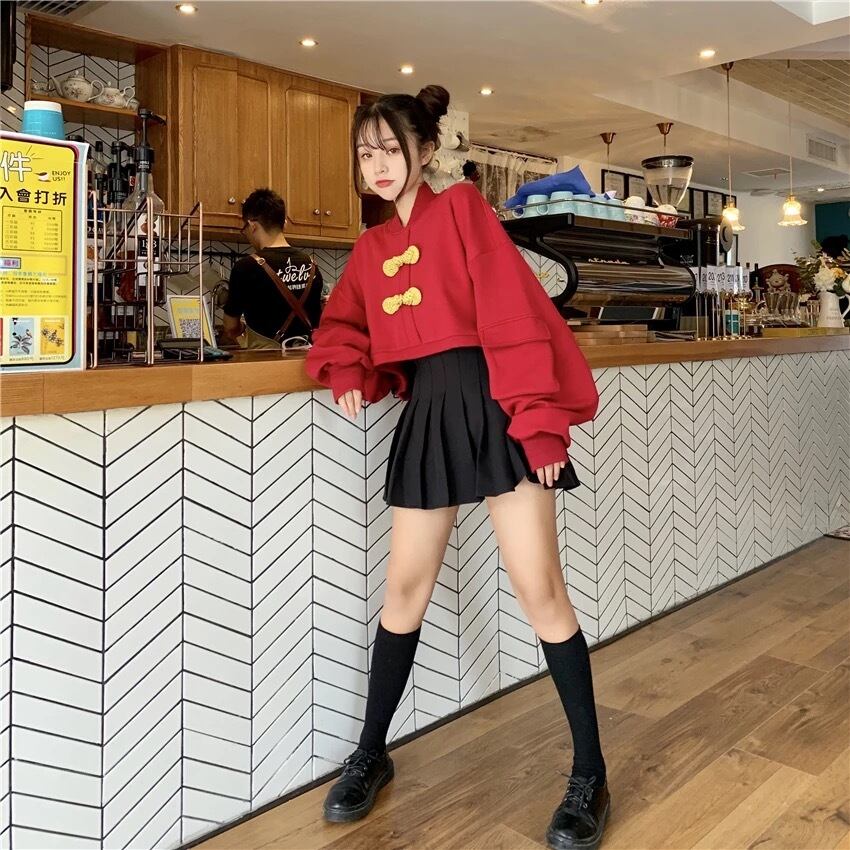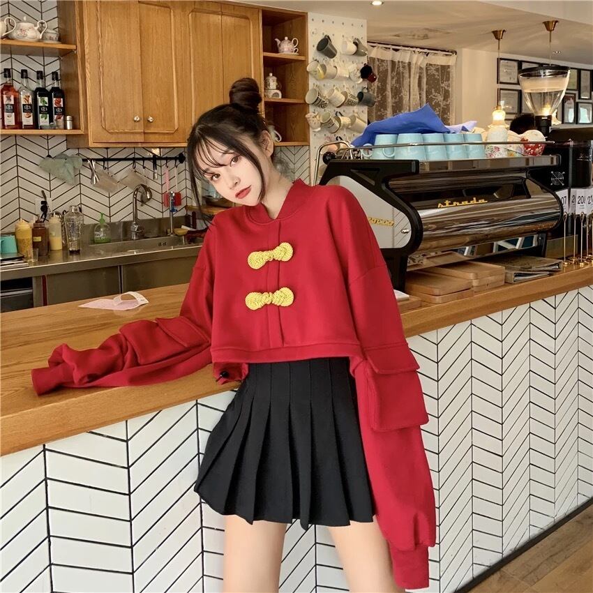 【 国内発送 t041 】チャイナスウェット チャイナ 中華 ショートトップス ミニ丈 カジュアル ファッション