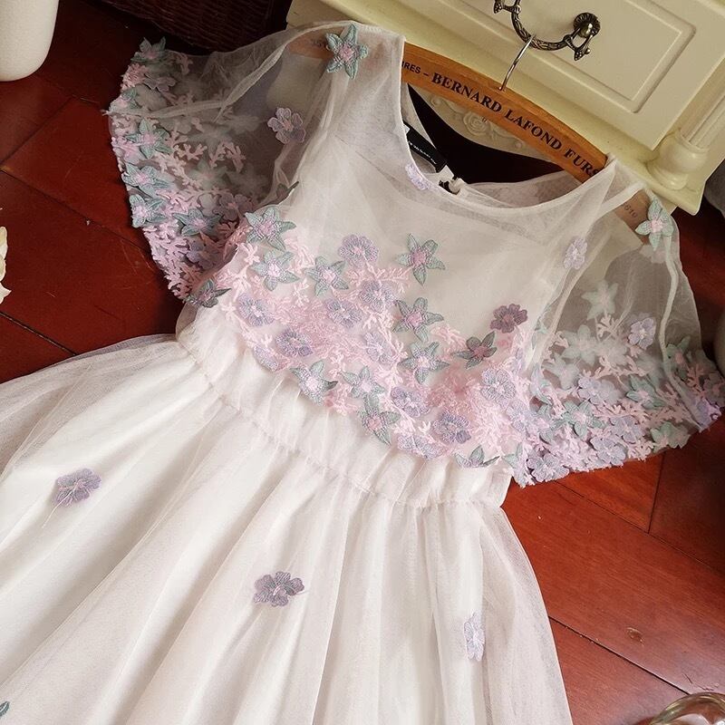 【 国内発送 d121 】コットンキャンディワンピース フラワー刺繍ワンピース 刺繍ワンピース ひざ丈ワンピース