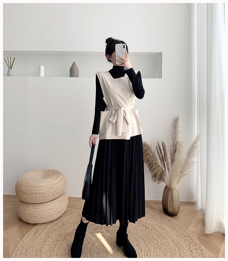 【 国内発送 s029 】プリーツスカート トップス ベスト セットアップ 3点セット セット商品