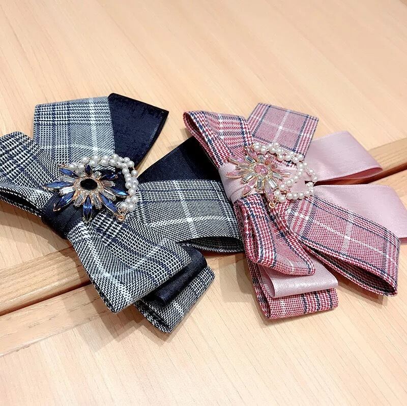 【 国内発送 a081 】リボンブローチ リボン アクセサリー チェック柄 パール