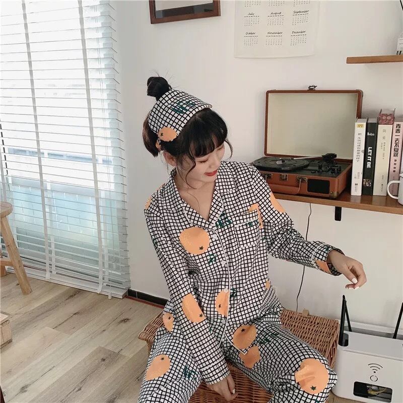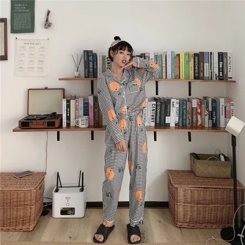 【 国内発送 r011 】フルーツチェックパジャマ パジャマ上下 イチゴ 苺 いちご オレンジ ルームウェア チェック柄 長袖 長ズボン