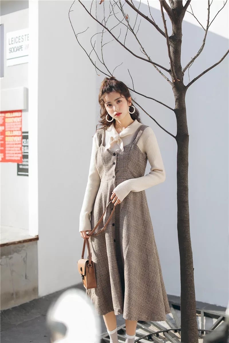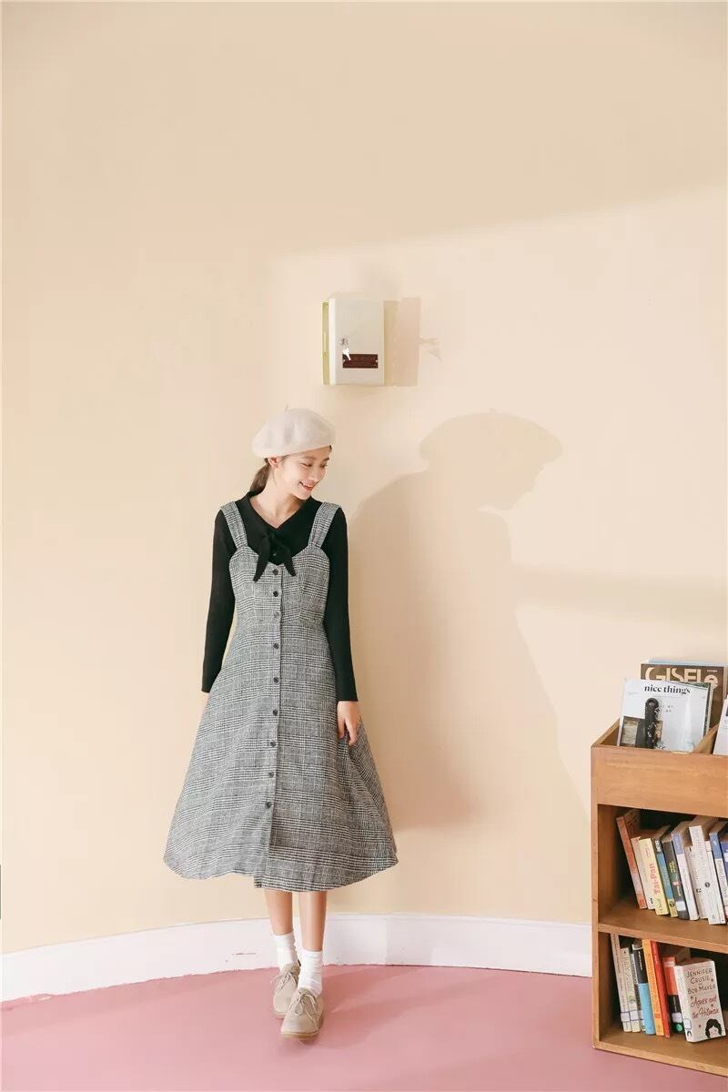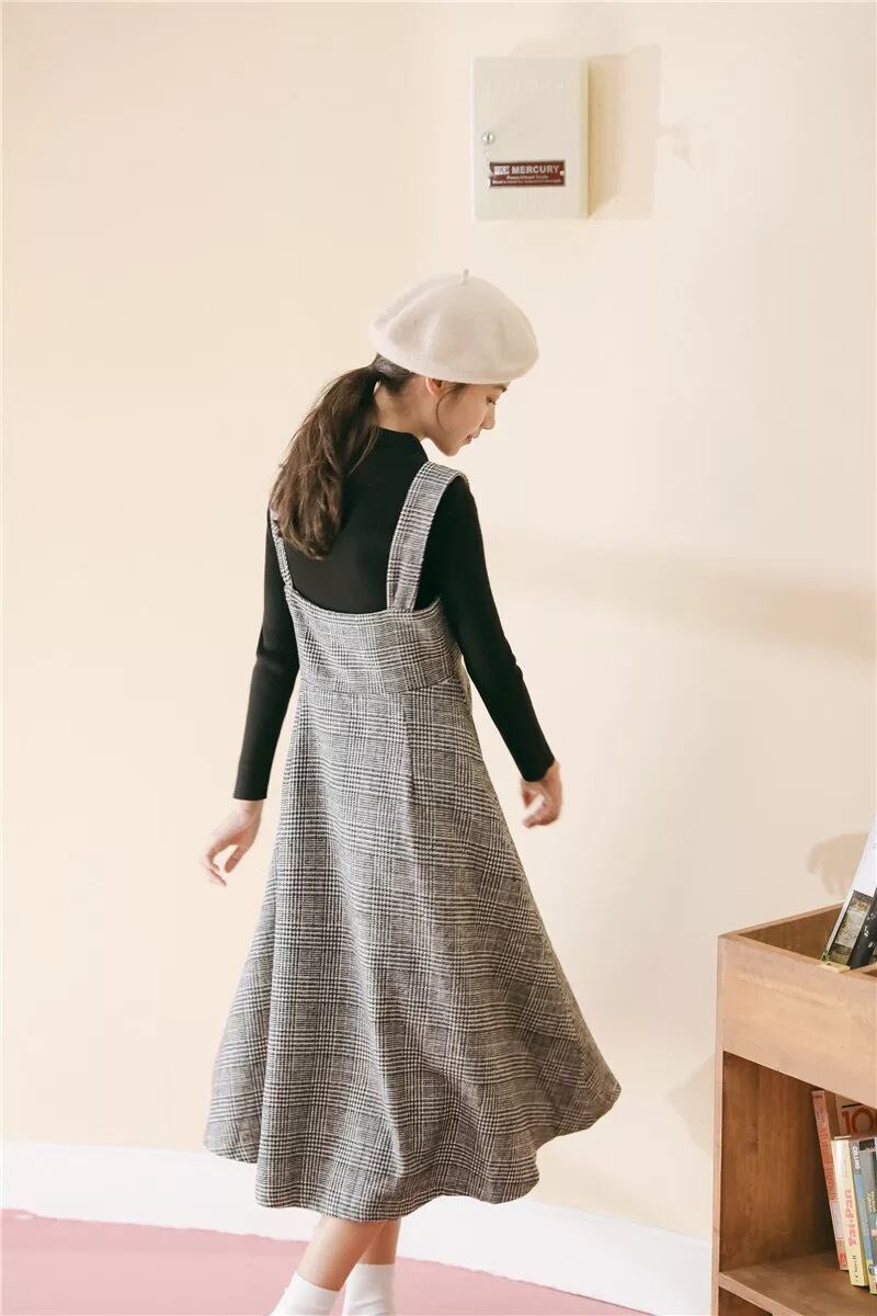 【 国内発送 d137 】グレンチェックワンピース 秋ワンピース ミモレ丈ワンピース ジャンパースカート
