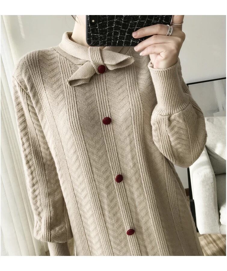 【 国内発送 d139 】リボンニットワンピース ミモレ丈ワンピース ミモレ丈ニットワンピース マタニティワンピース