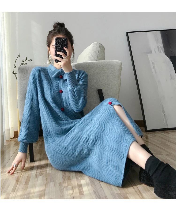 ゆったりシルエットで着心地抜群なロングニットワンピース♪