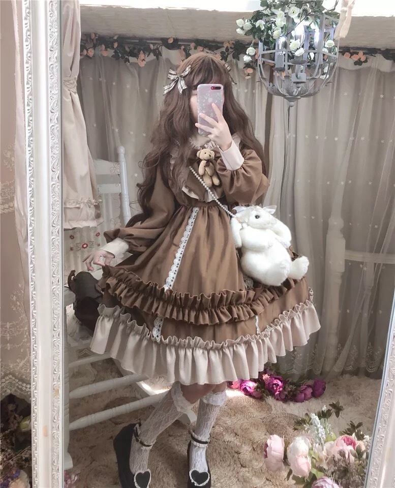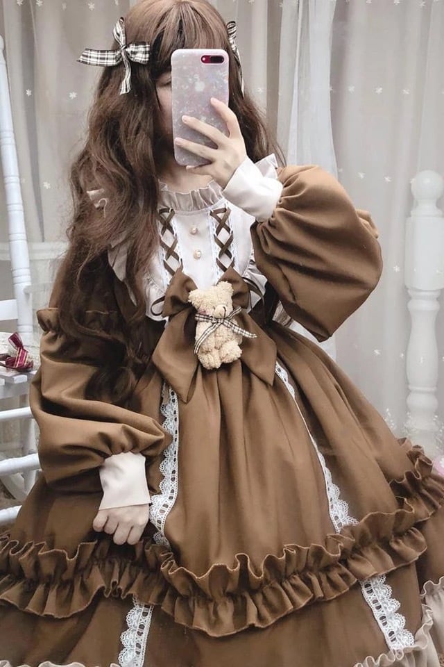 【 国内発送 d140 】くまちゃんワンピース ロリータワンピース フリルワンピース クラロリ クラシカル