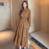 【 国内発送 d141 】襟付きワンピース 上品 お食事会 ロングワンピース シンプル
