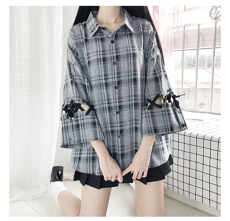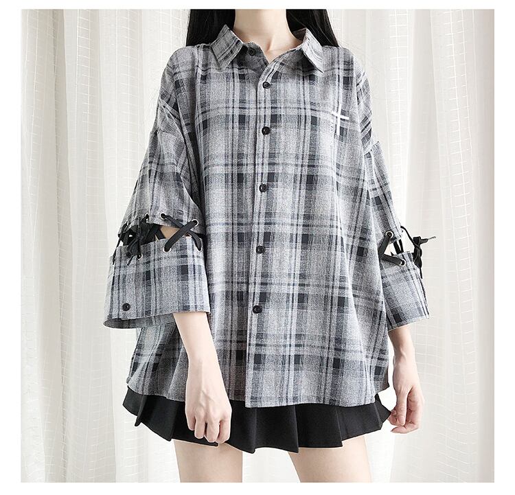 【 国内発送 t054 】ゴシックチェック柄シャツ ゴシック ロリータ ゴスロリ 原宿系 シャツ