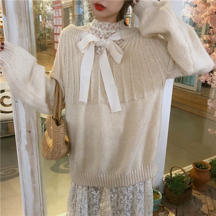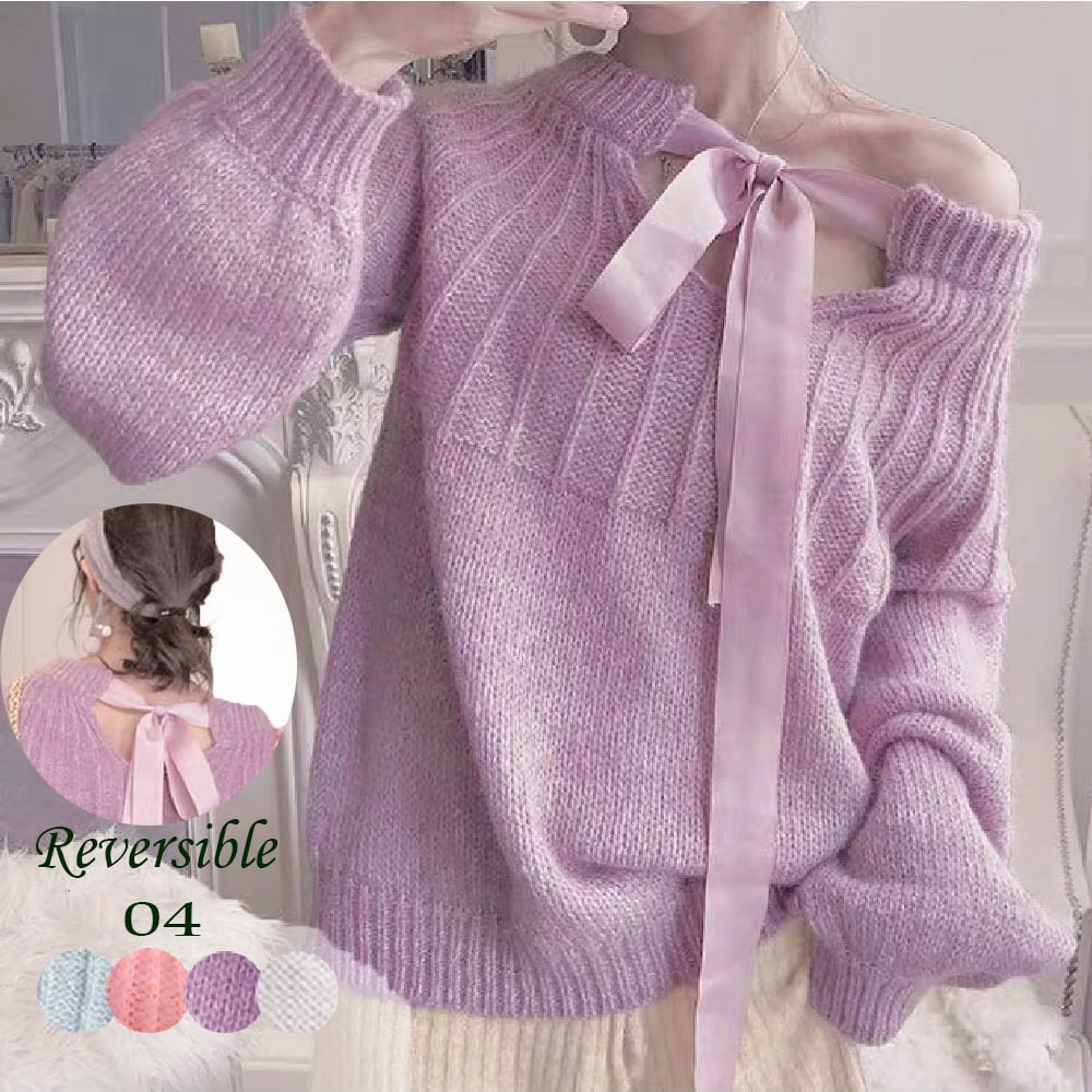 【 国内発送 t059 】2wayリボンニット セーター ニット リボン 抜け感