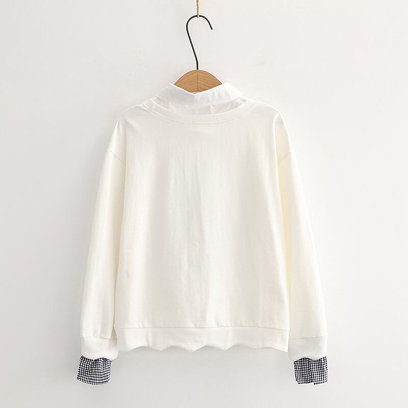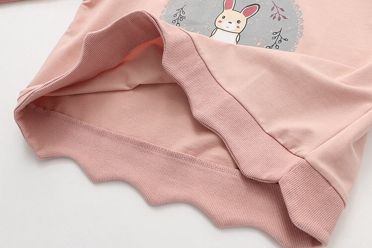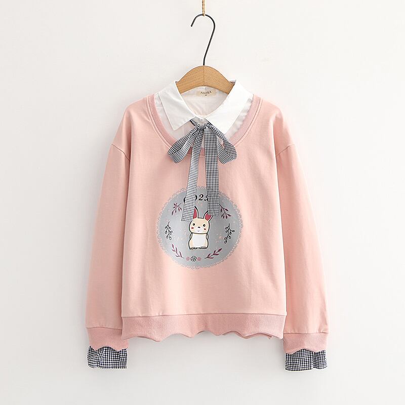 【 国内発送 t065 】うさぎプリントロングTシャツ 襟付きトップス リボン帯