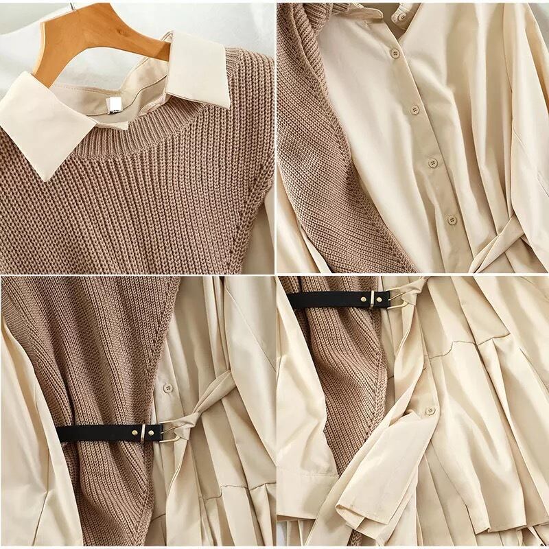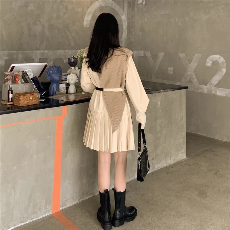 【 国内発送 t067 】プリーツシャツ&ハーフベスト