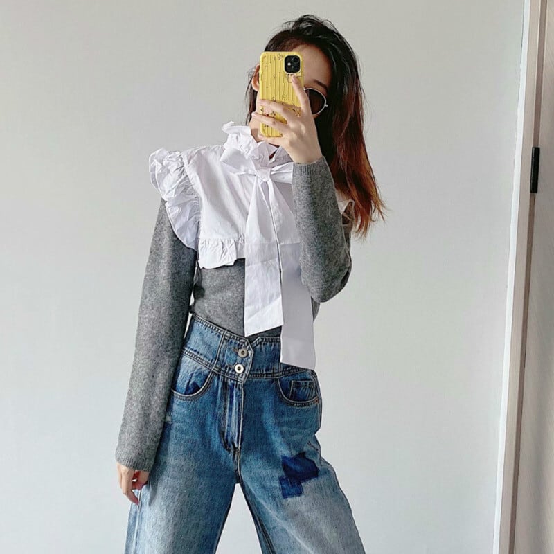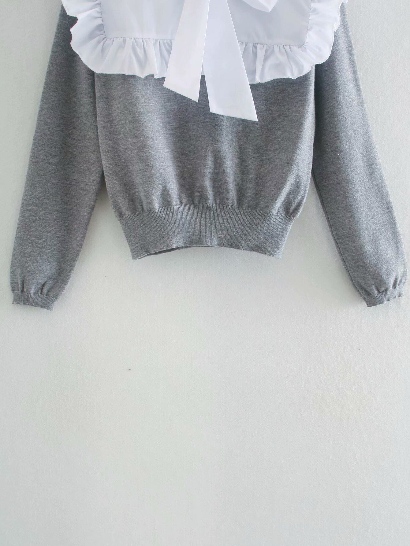 【 国内発送 t071 】リボンタイフリルプルオーバー 大人エレガント カジュアル S M L
