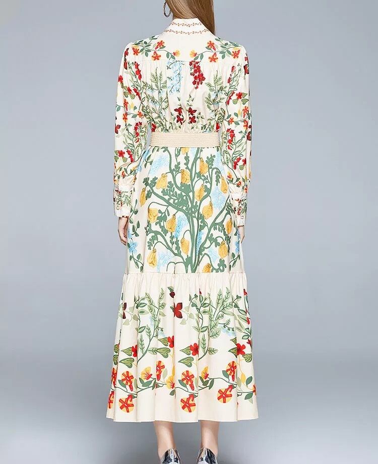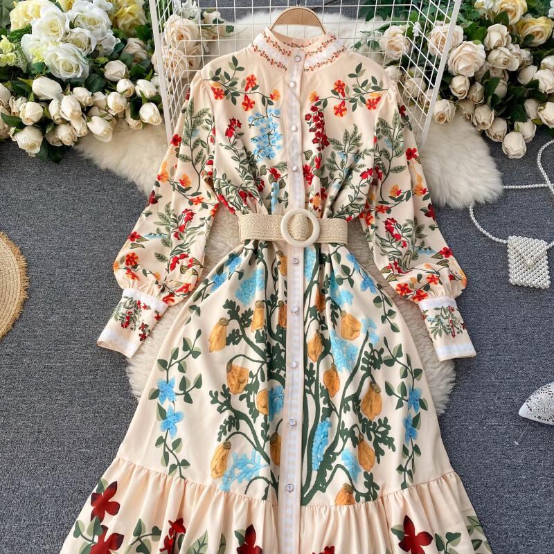 【 国内発送 d164 】フラワープリントロングワンピース ハイネック 上品 華やか ワンピース