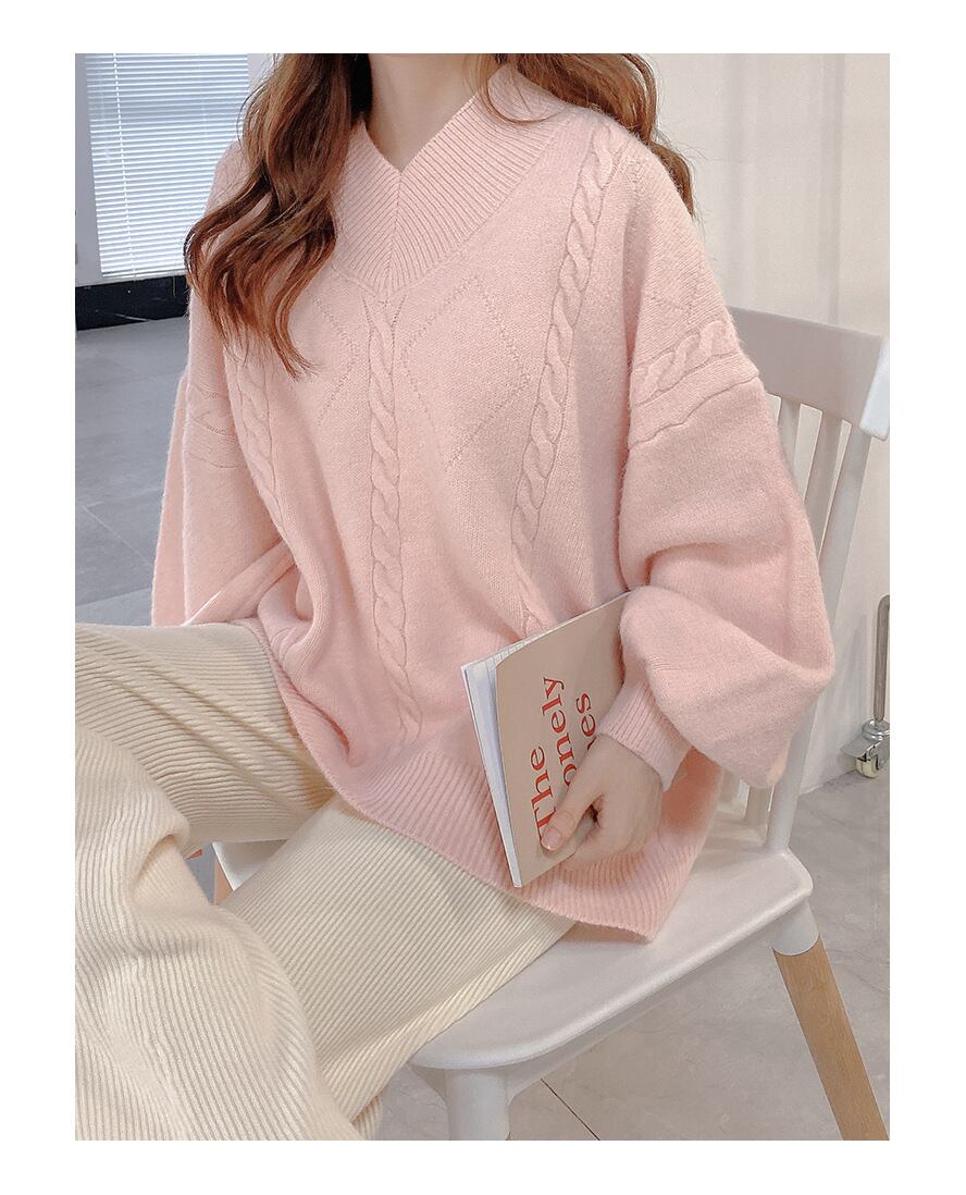【 国内発送 t079 】ボリューム袖ニット プルオーバーニット ニット セーター 秋 冬 Vネック