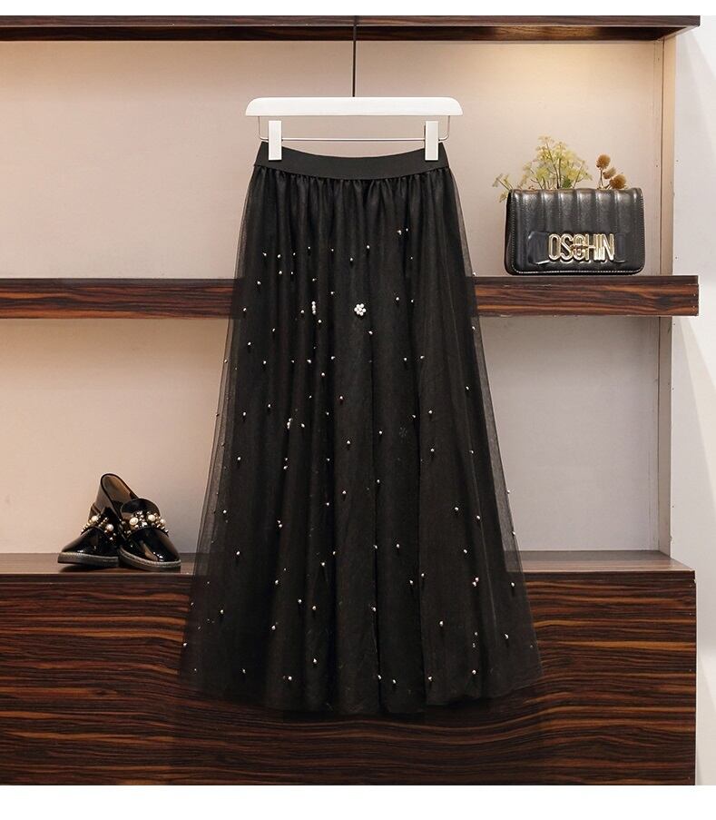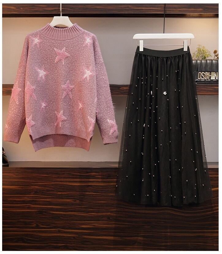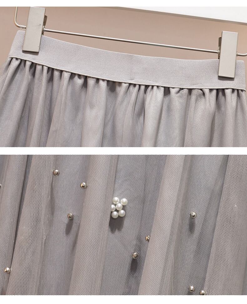 【 国内発送 s045 】大きいサイズあり セーター&パールチュールスカート セットアップ セーター ニット チュールスカート スカート 秋冬 冬 春 M L 2L 3L 4L 5L