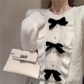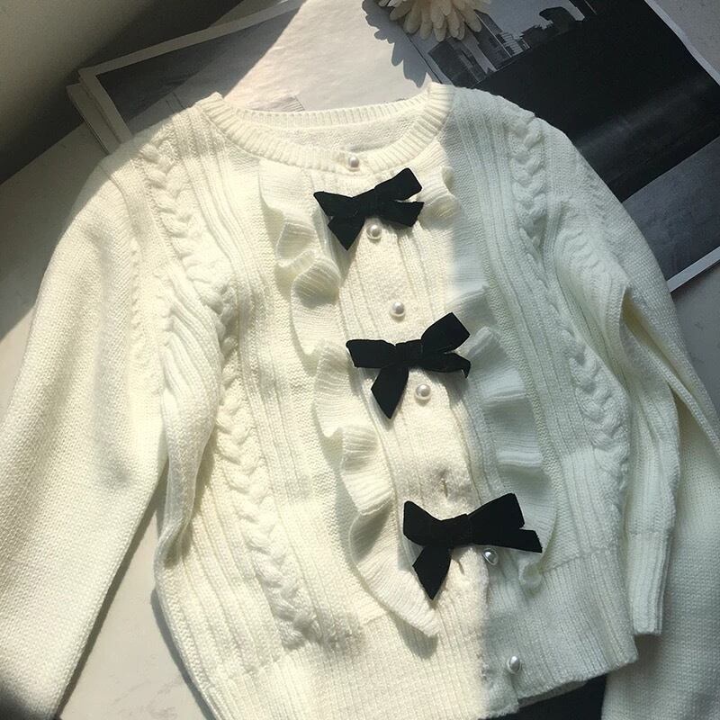 【 国内発送 t088 】リボン&フリルセーター セーター 薄手 リボン ガーリー 可愛い 韓国 ファッション