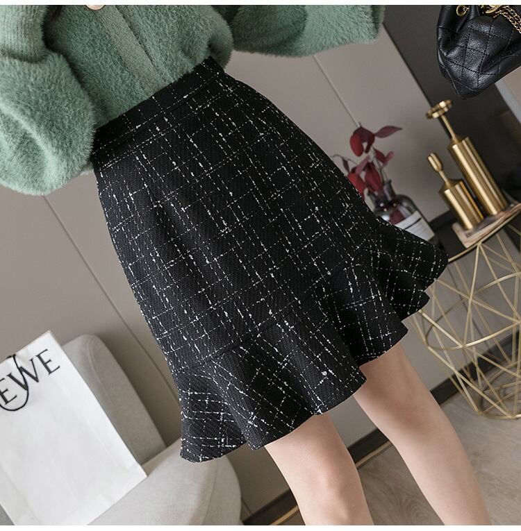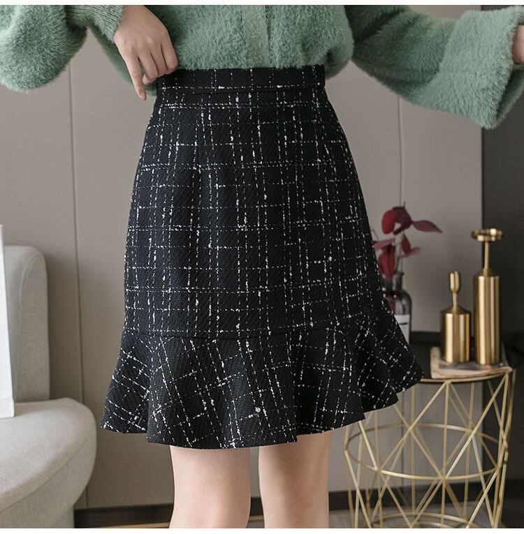 【 国内発送 sk049 】チェックペプラムスカート マーメイドスカート チェック柄 膝上丈