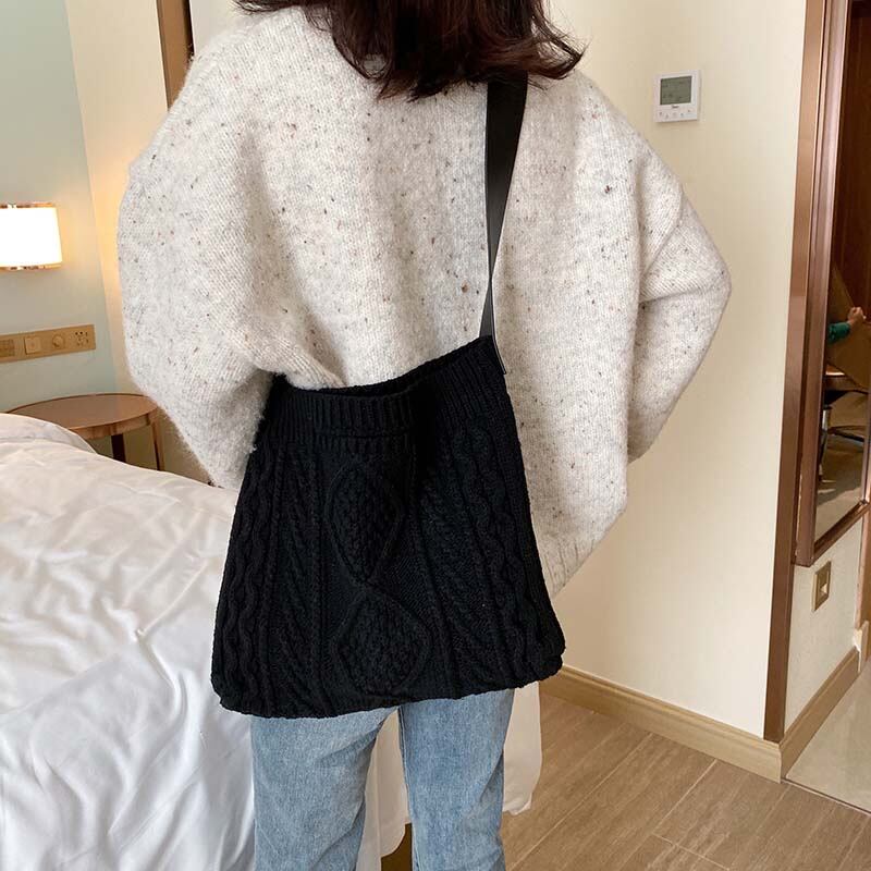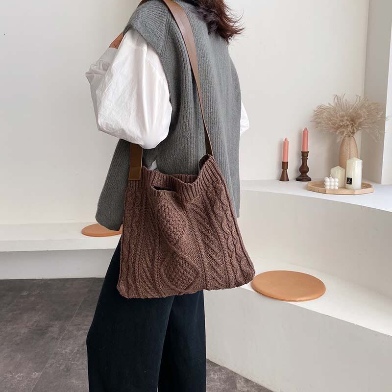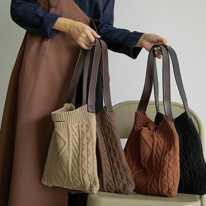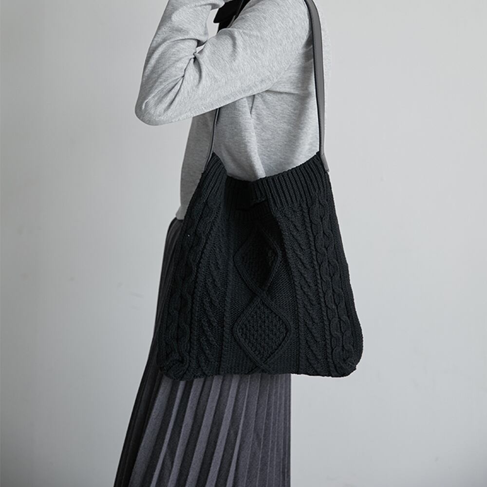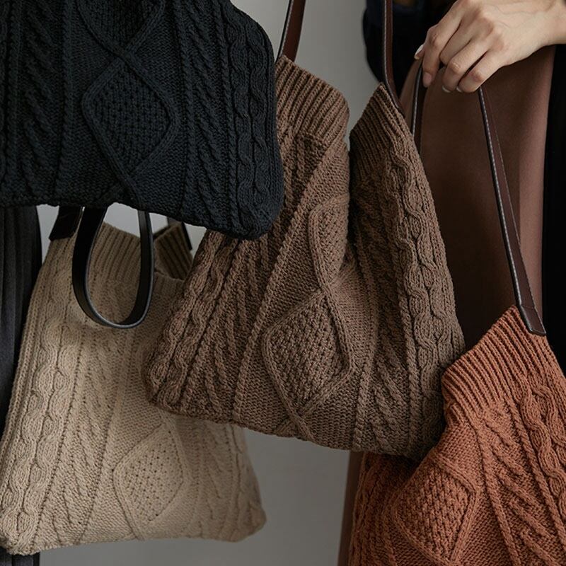 【 国内発送 b042 】2wayニットトートバック トートバッグ ハンドバッグ おしゃれ 秋冬