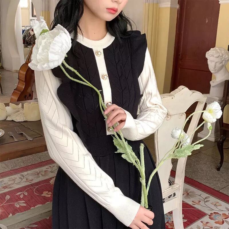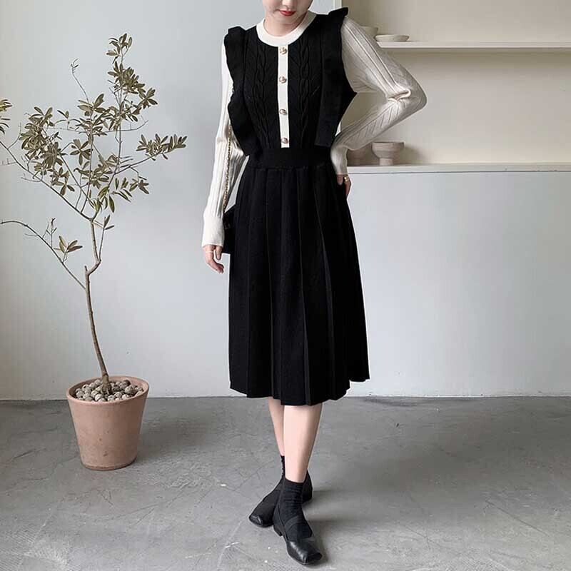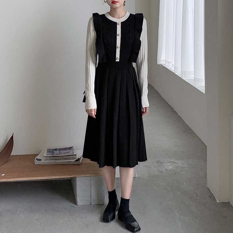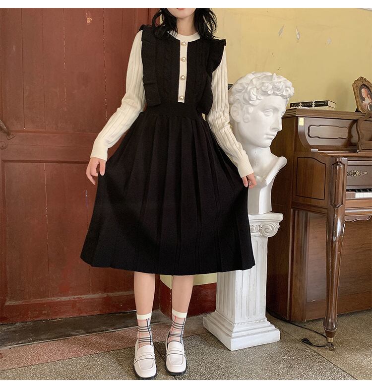 【 国内発送 d175 】大きいサイズ あり ニットプリーツワンピース ニットワンピース ニットワンピ ブラック ローズ S M L 2L 3L