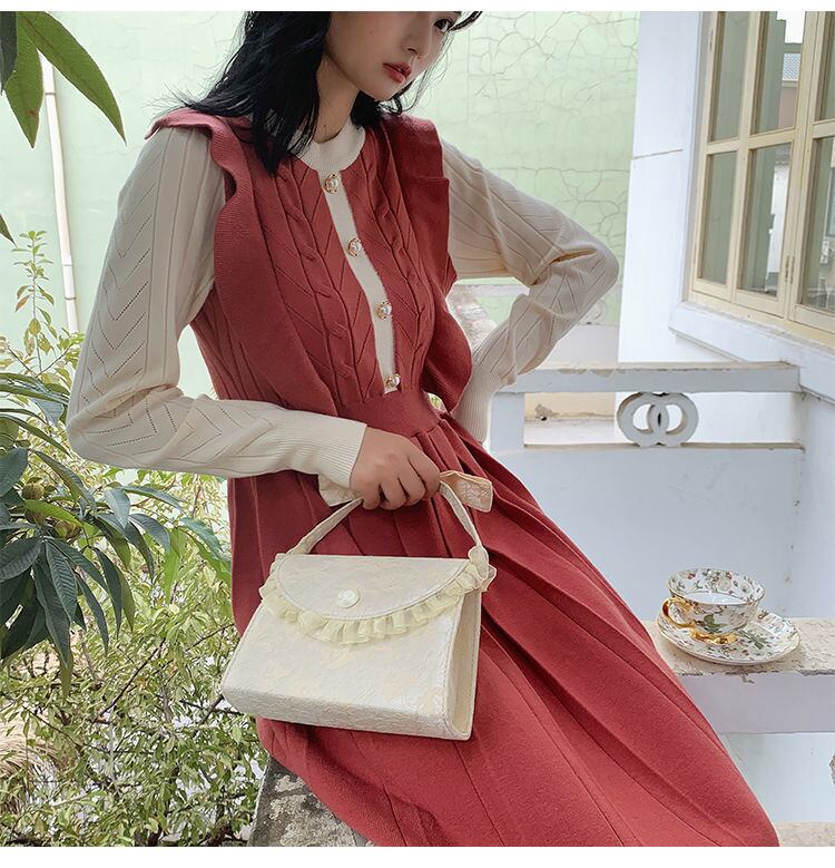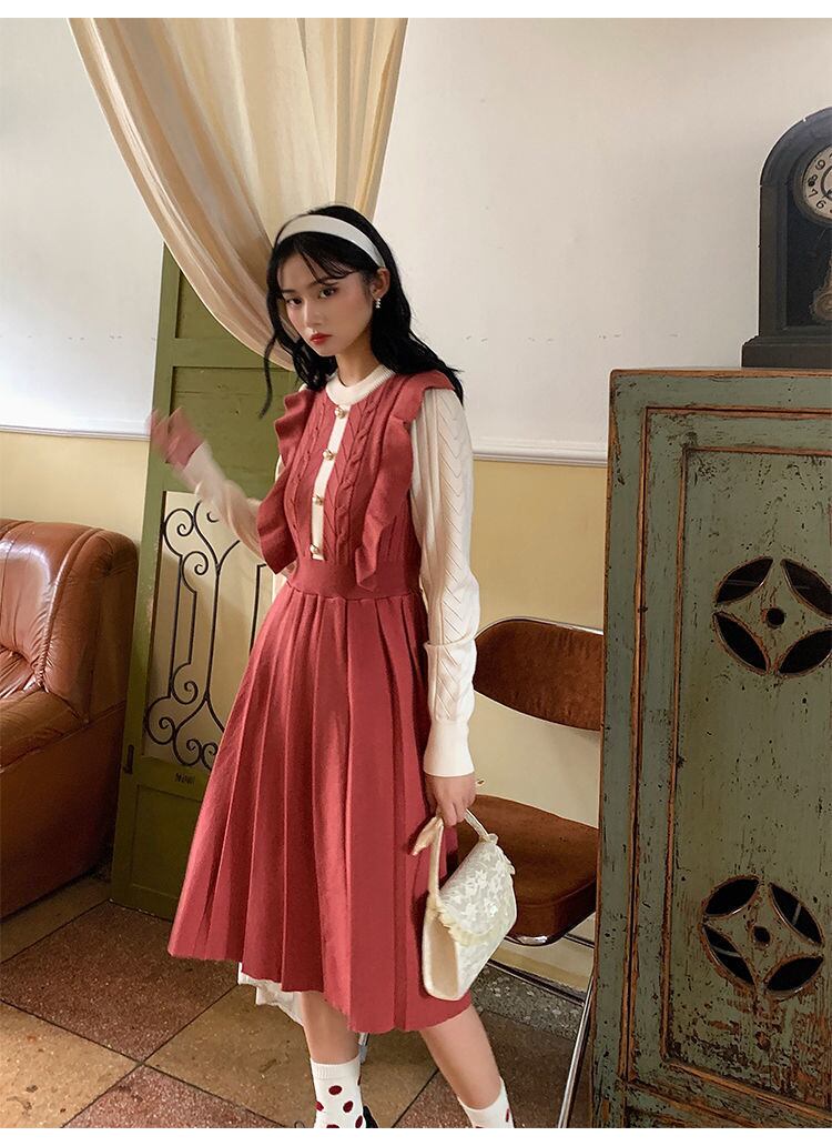 ニットプリーツワンピース。
