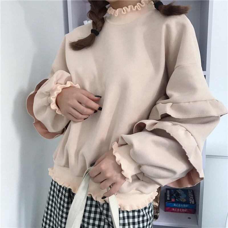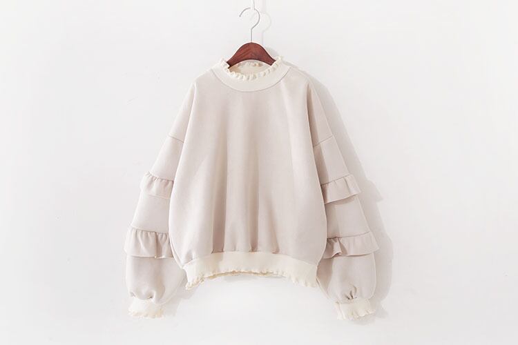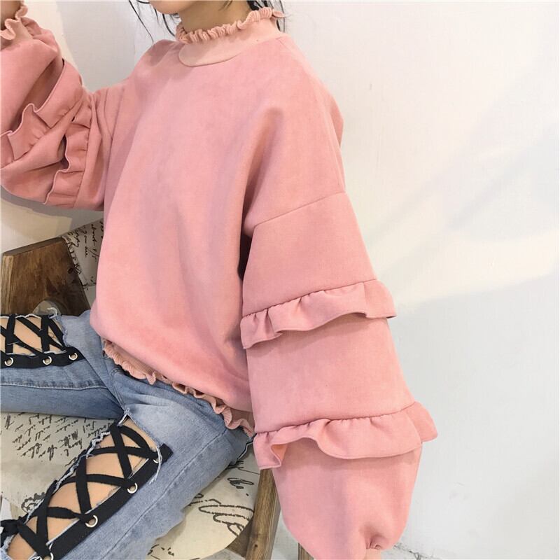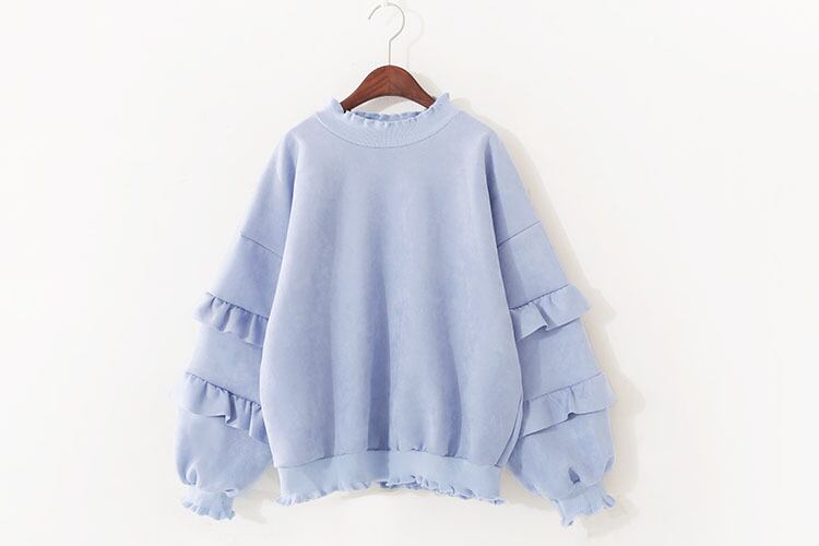 【 国内発送 t095 】スエードフリルスウェット フリルスウェット プルオーバー ガーリー シンプル カジュアル
