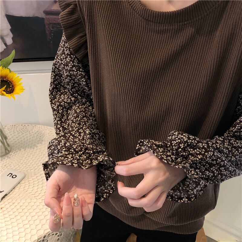 【 国内発送 t102 】ドッキングニット ニットブラウス カールネック ブラウス シンプル 韓国ファッション