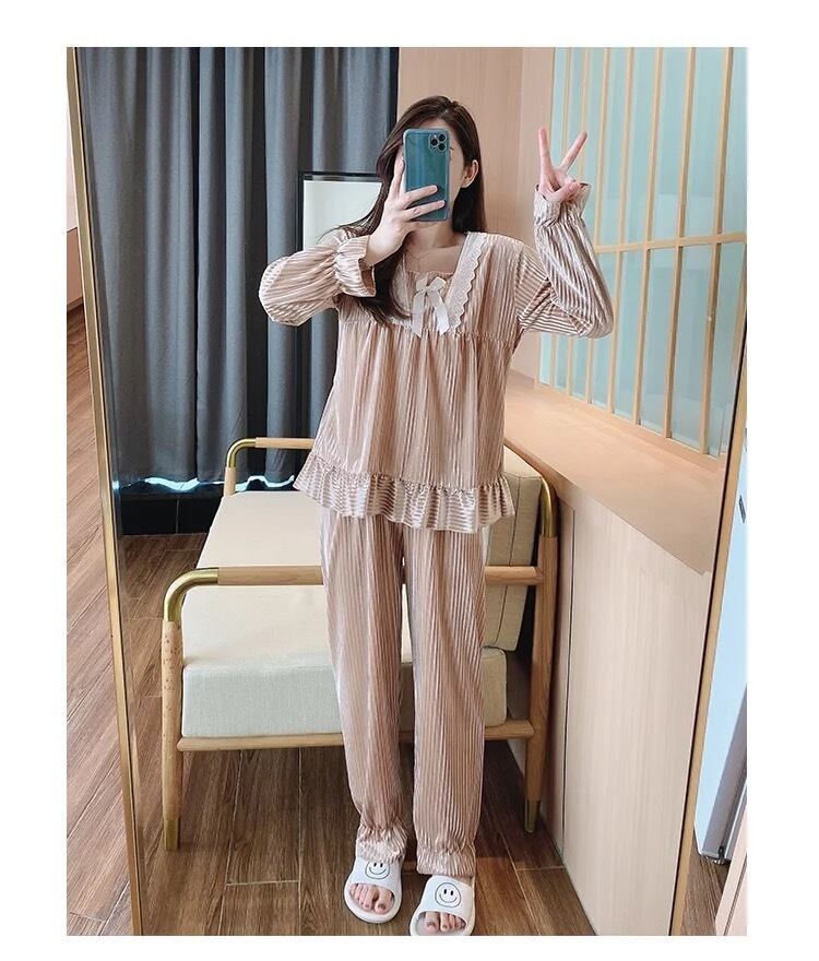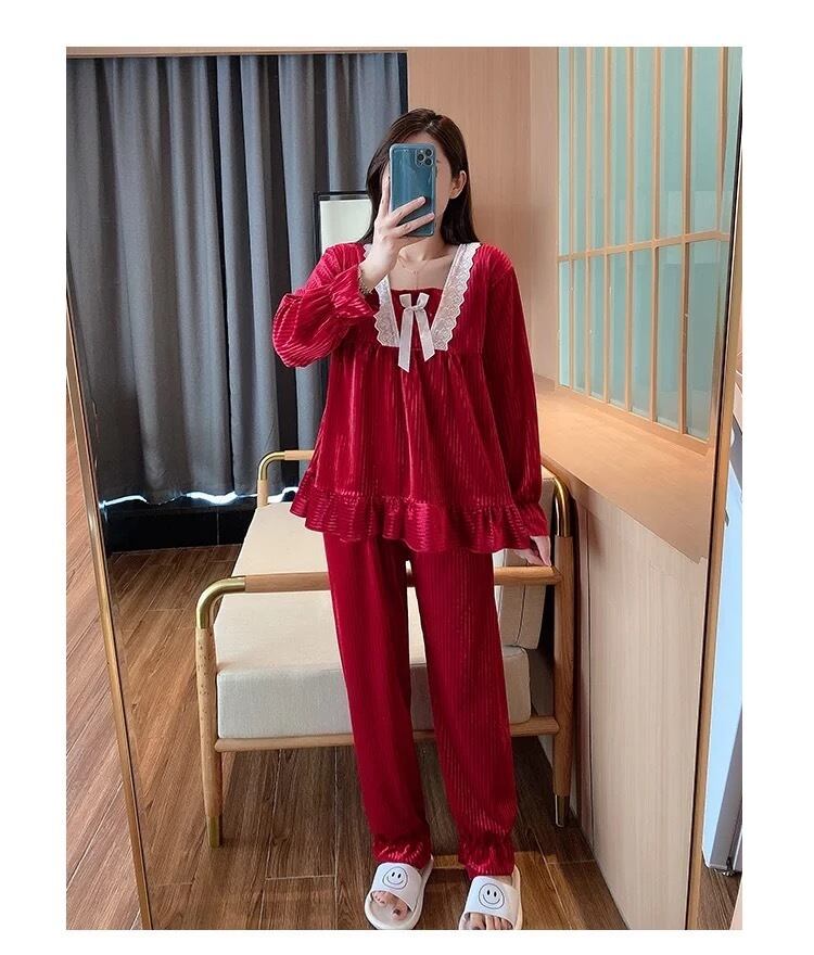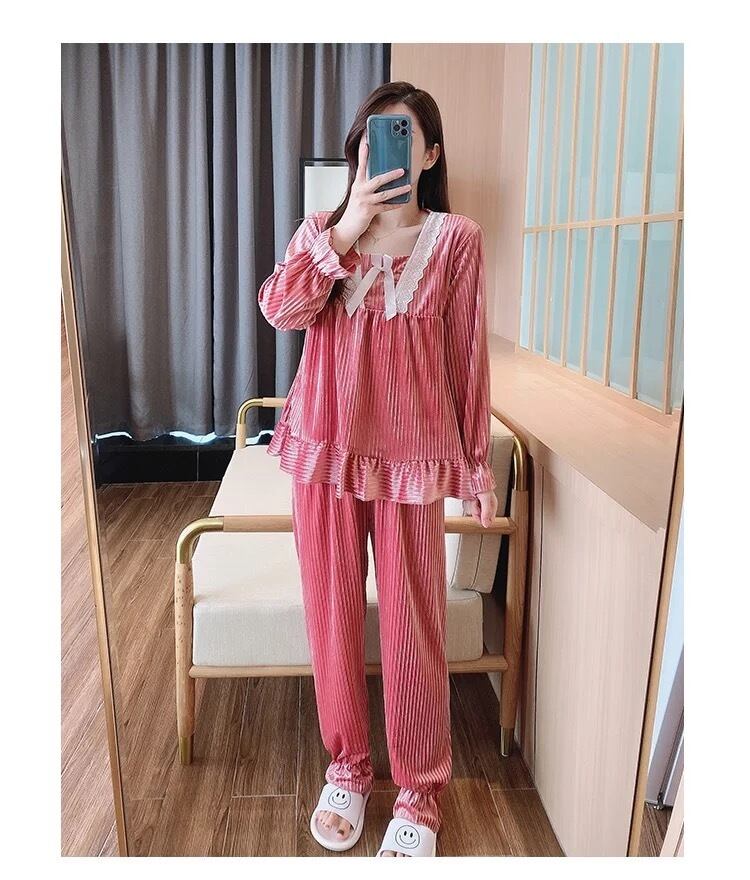 【 国内発送 r018 】ベロアルームウェア上下セット ルームウェア 部屋着 パジャマ 可愛い おうち時間