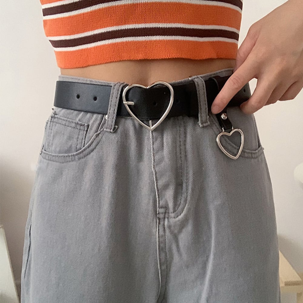 シンプルながらとってもキュートなハートモチーフ付きのフェイクレザーベルト。