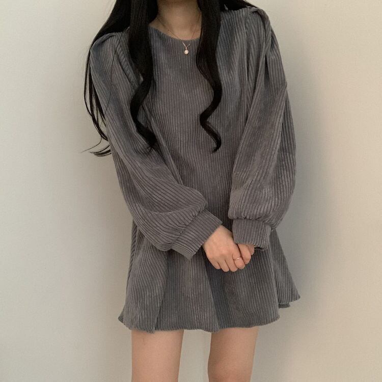 愛らしいパフスリーブ、コーデュロイワンピースです。