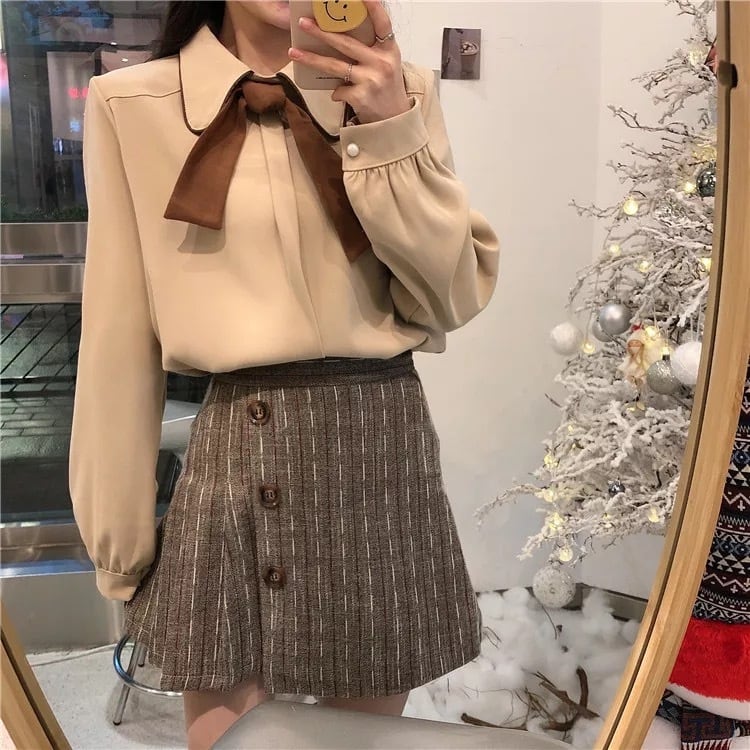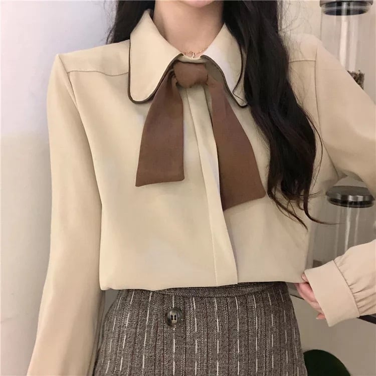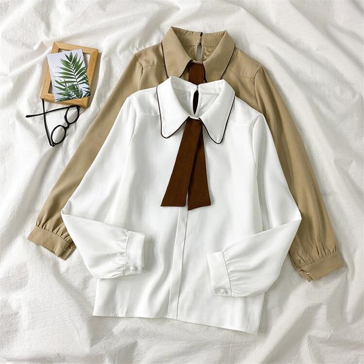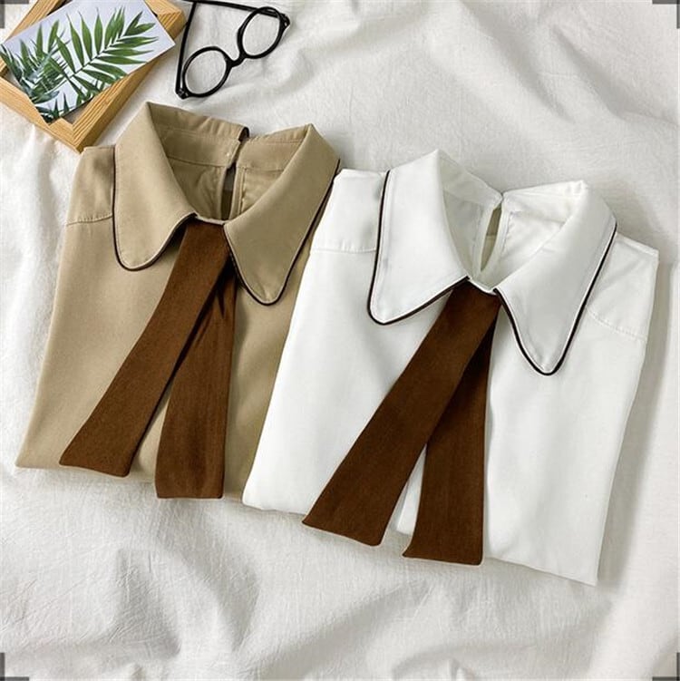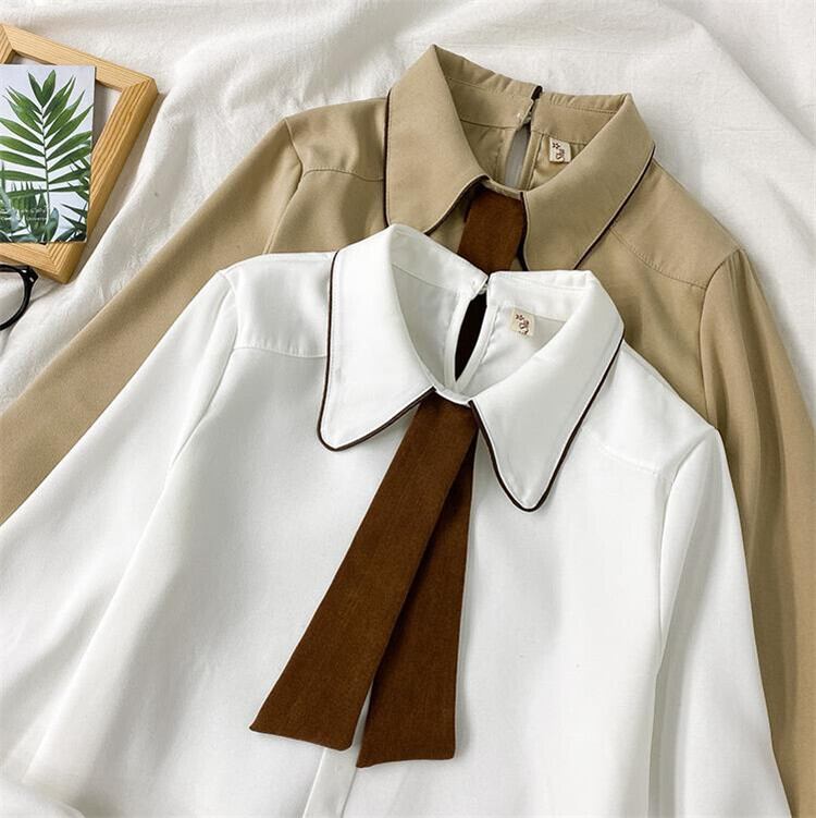 【 国内発送 t115 】ハイウエストリネンシャツ タイ付き シャツ 量産型 韓国 ファッション オフィス カジュアル