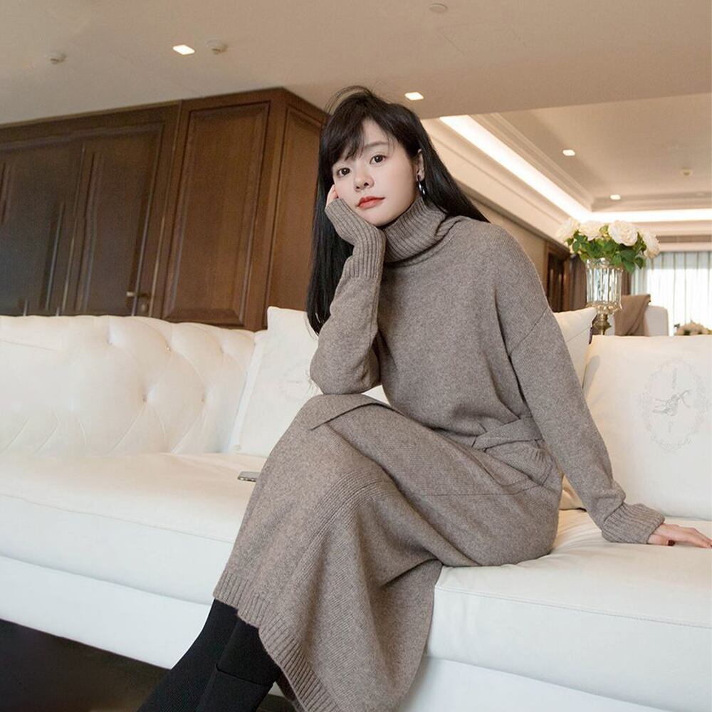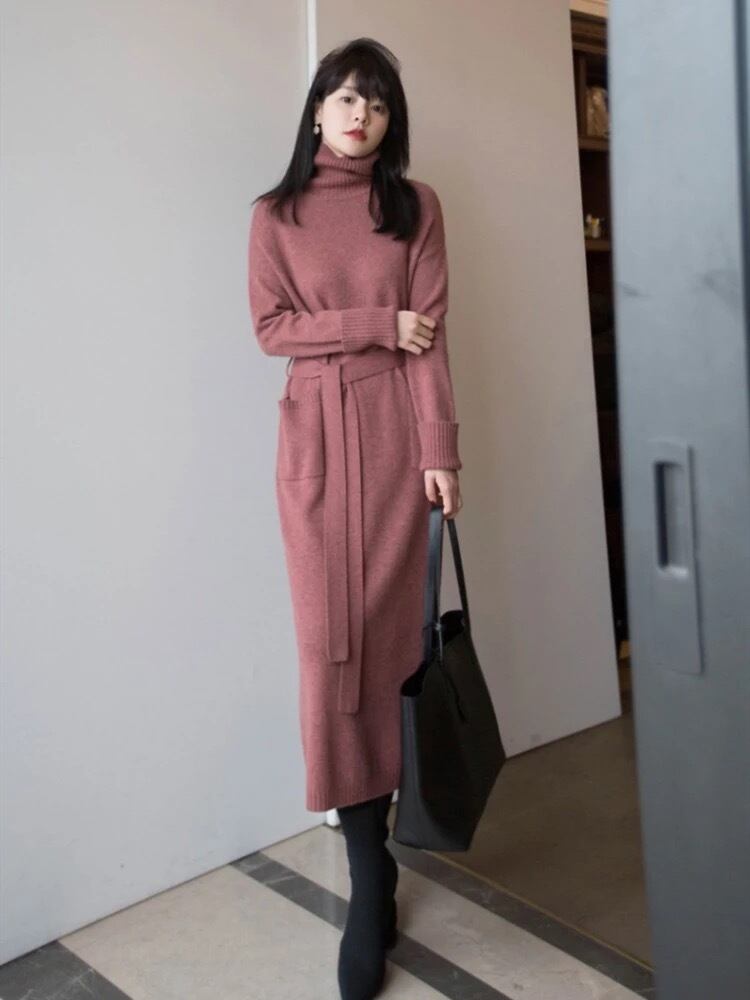 【 国内発送 d188 】ウエストマークニットワンピース ハイウエスト ニットワンピ ワンピース ロング