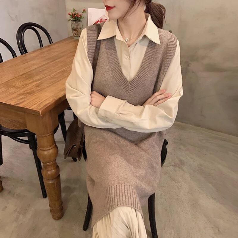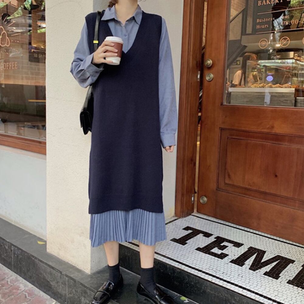 シャツワンピースや長袖トップスと合わせてレイヤードスタイル完成。