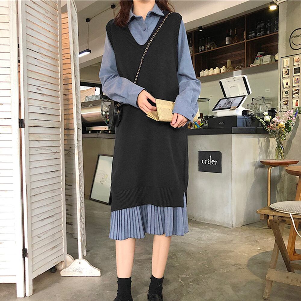 【 国内発送 t116 】ニットロングベスト ノースリーブ ニットベスト ベスト ネイビー モカ ブラック