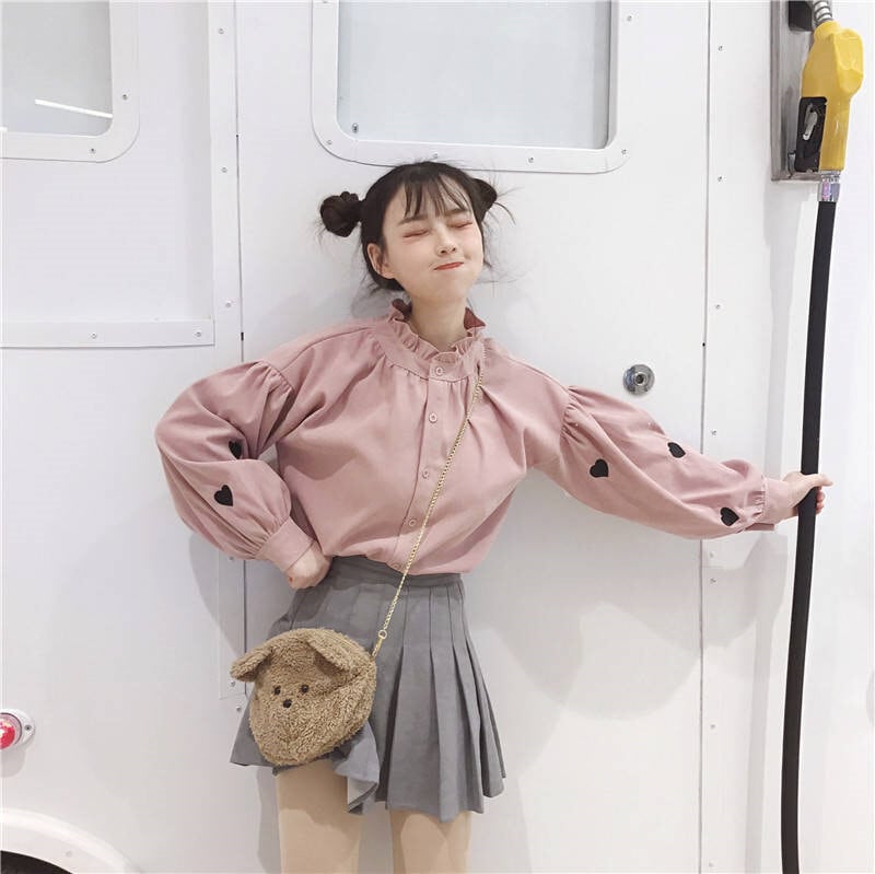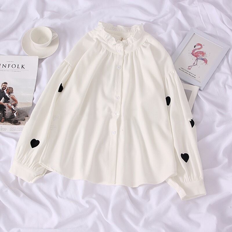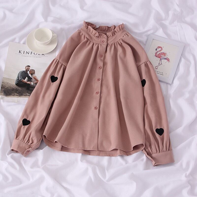【 国内発送 t124 】ハートガーリーブラウス 長袖ブラウス ガーリー 大人かわいい 可愛い ピンク ホワイト カジュアル