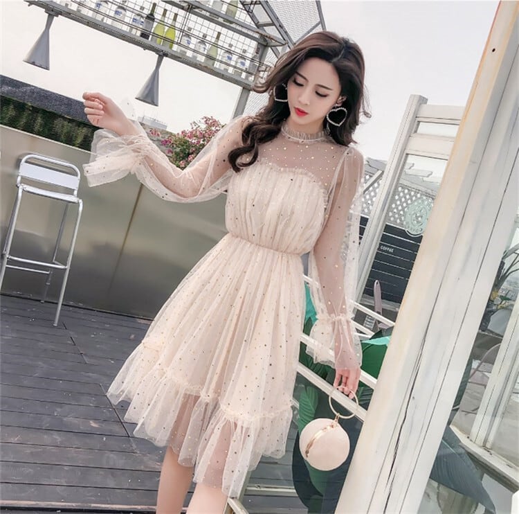【 国内発送 d197 】Starry☆dress シースルー ワンピース 韓国ファッション 透け感 おしゃれ かわいい