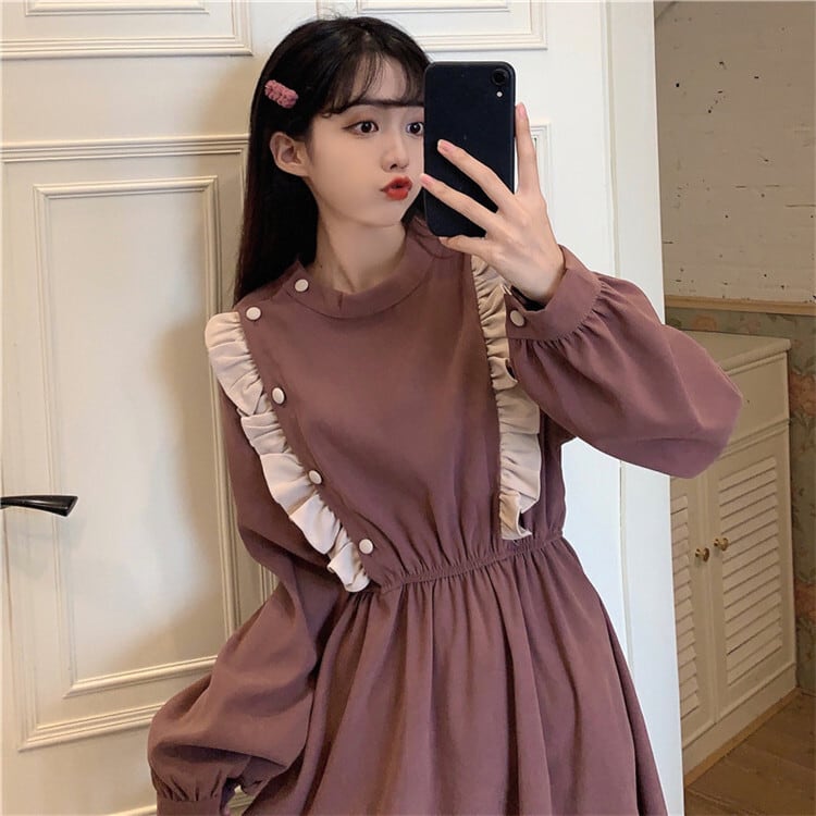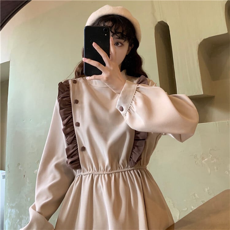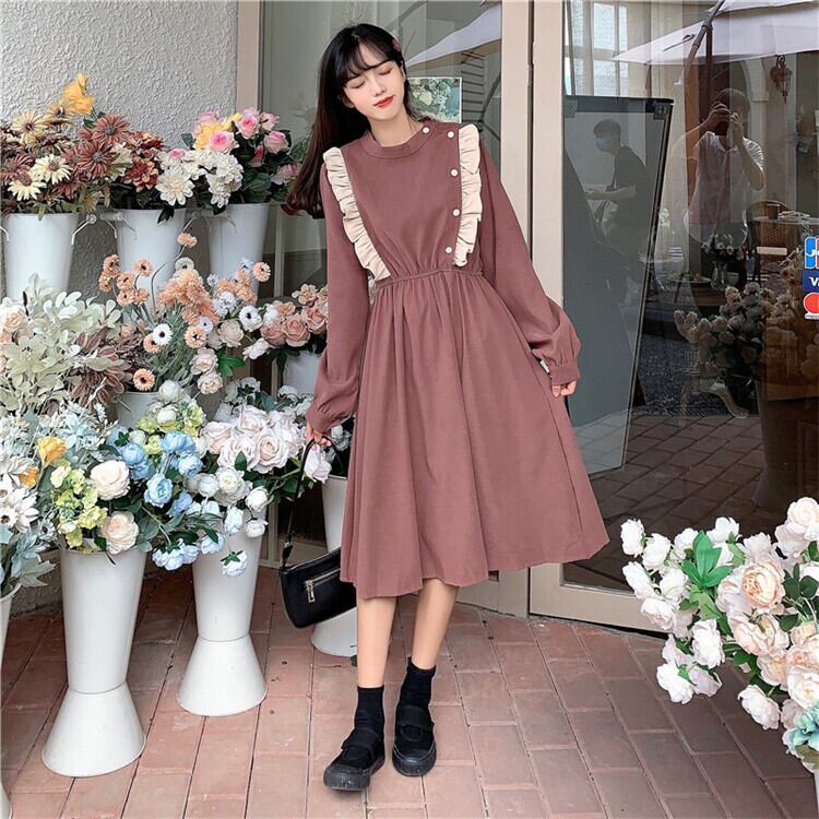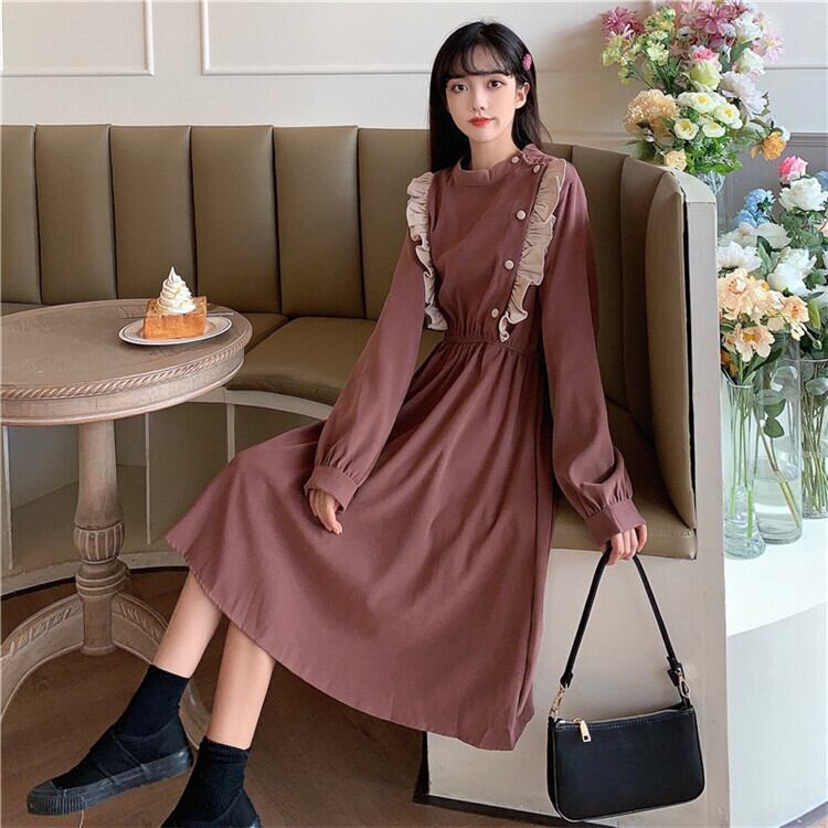 【 国内発送 d199 】ガーリーレトロワンピース ミモレ丈ワンピース ガーリー レトロ