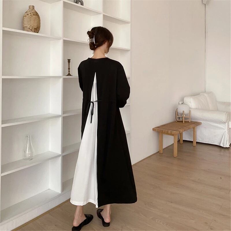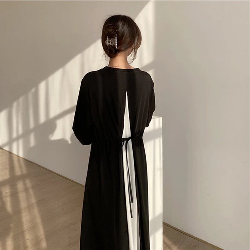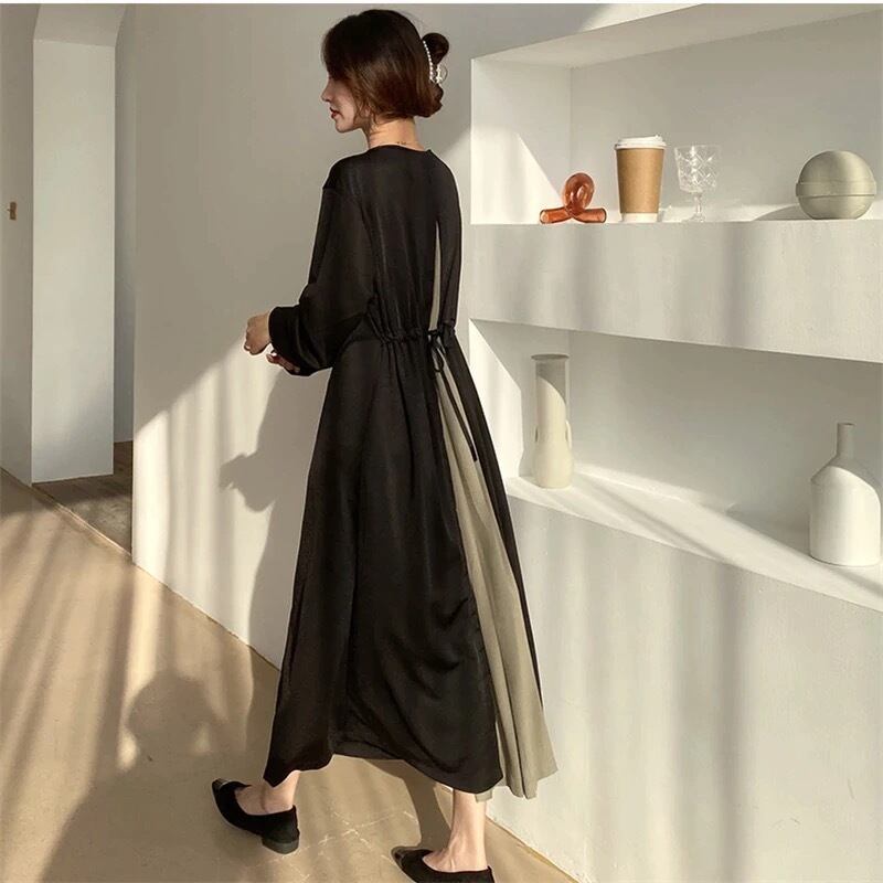 【 国内発送 d200 】バックカラーロングワンピース ロング 長袖 ワンピース ナチュラル おしゃれ シンプル