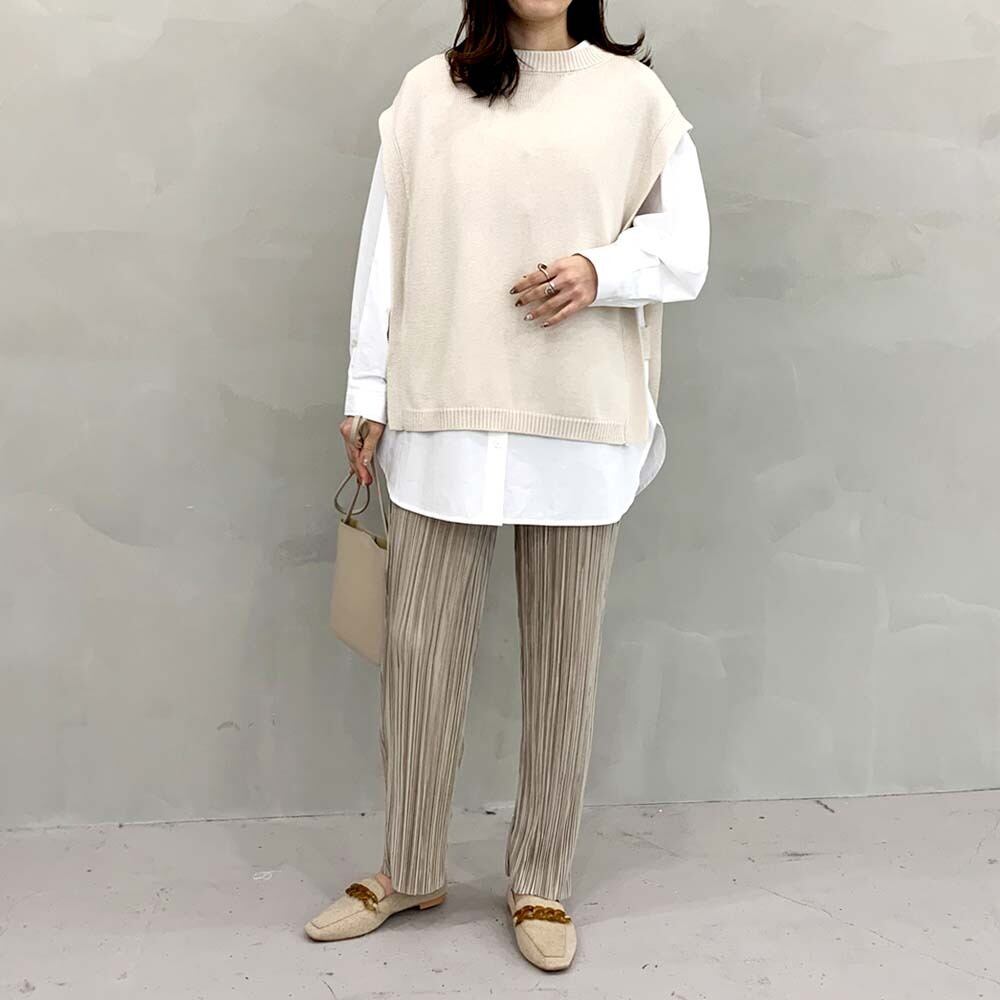 様々なレイヤードスタイルに使える今季オススメのニットベスト。