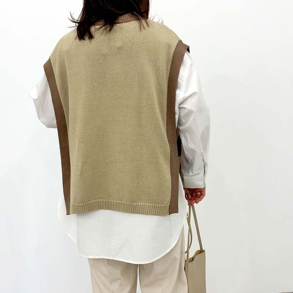 サイドオープンのデザインがポイントのニットベスト。 シャツや、ロンTとの相性バツグン◎
