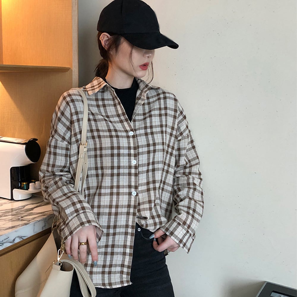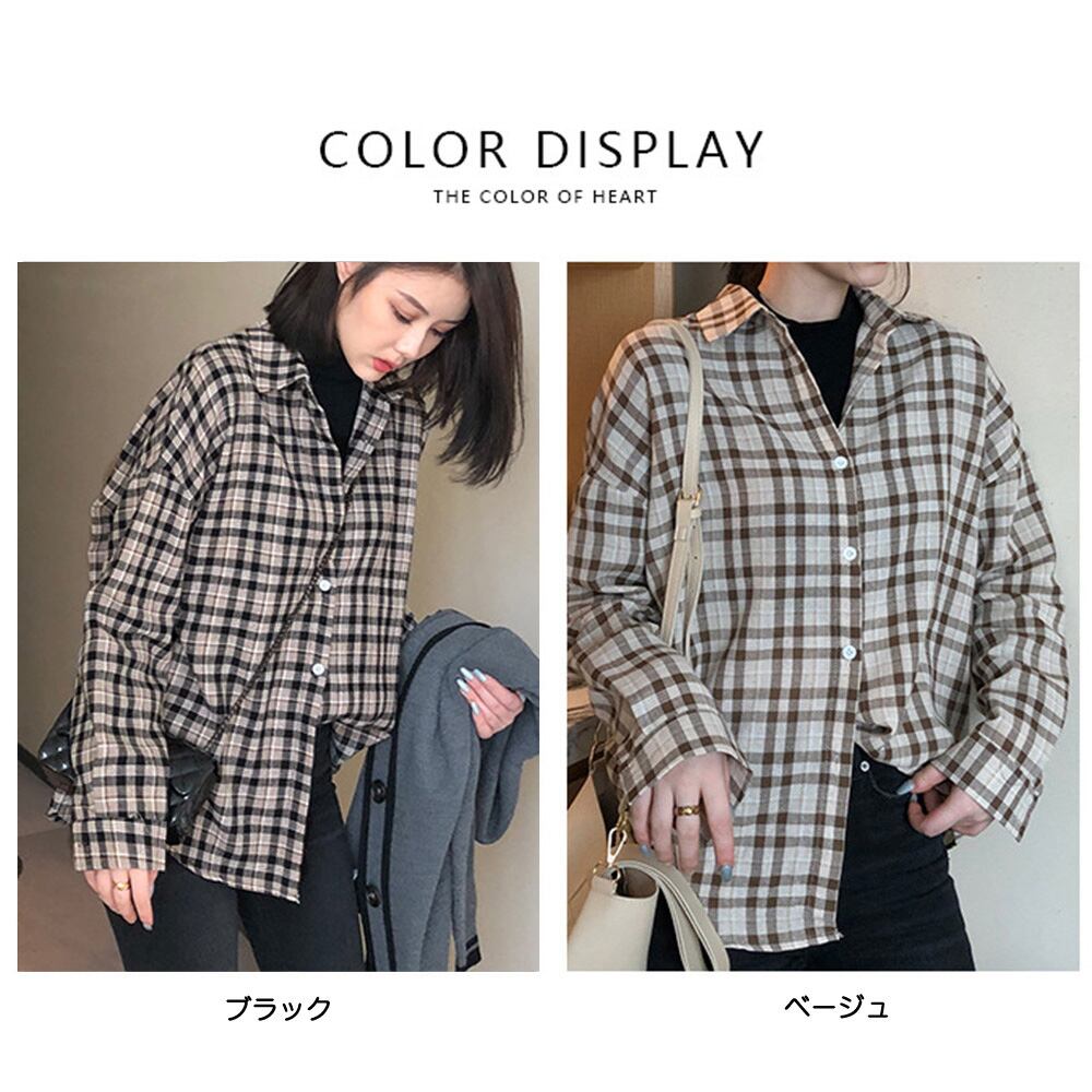 【 国内発送 t129 】ゆったりチェック柄シャツ チェック シャツ ブラウス カジュアル 大人