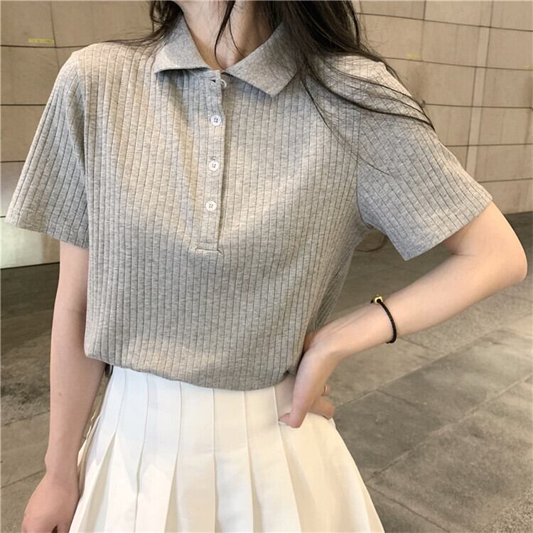 【 国内発送 t130 】ニットポロシャツ ポロシャツ ニットトップス 春 夏 襟付き 韓国ファッション