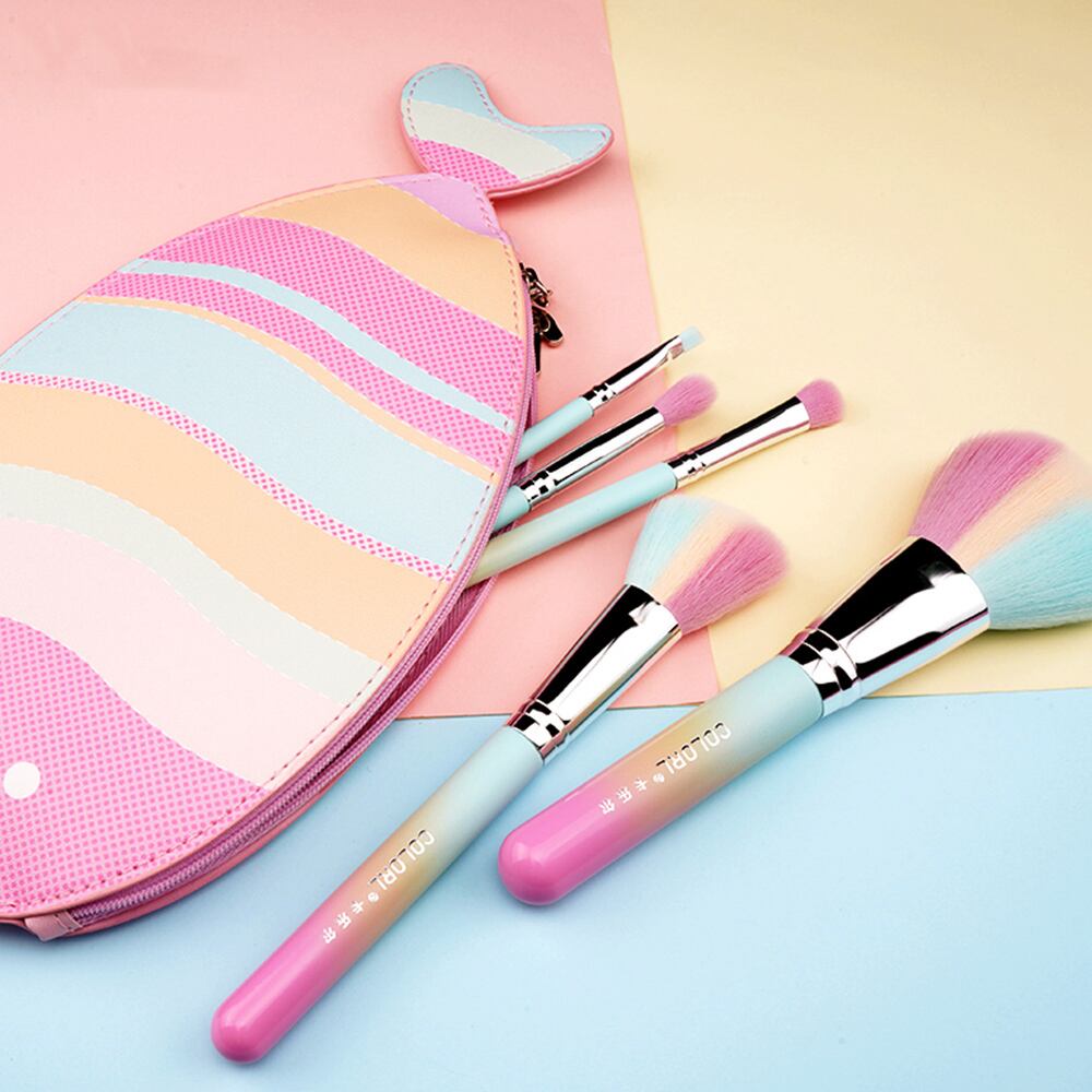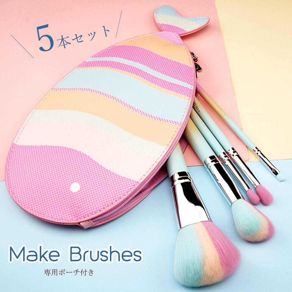 【 国内発送 a133 】おさかなメイクブラシセット メイクブラシ ポーチ付き カラフル 可愛い