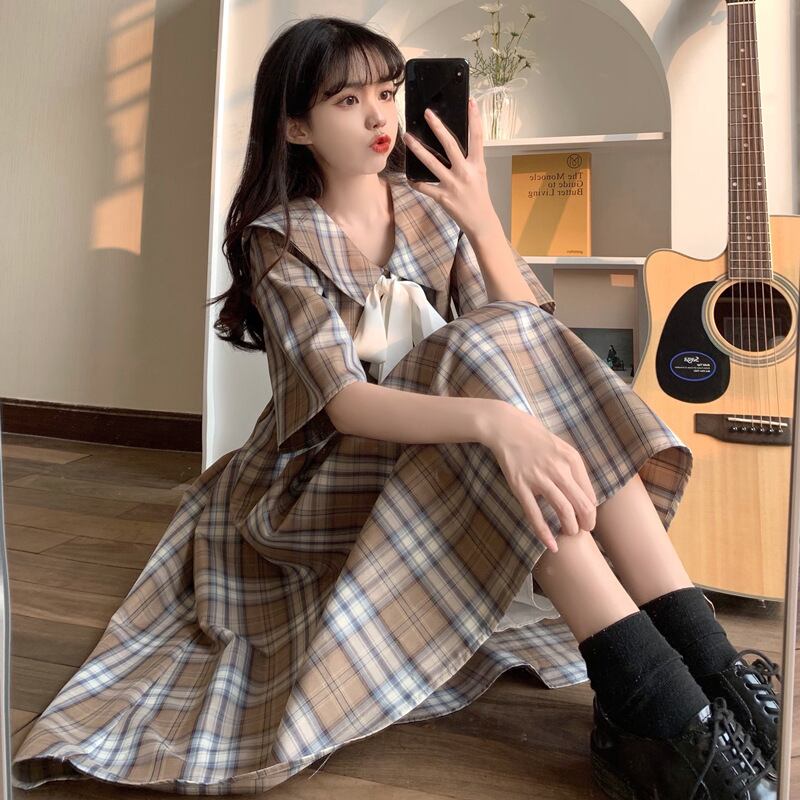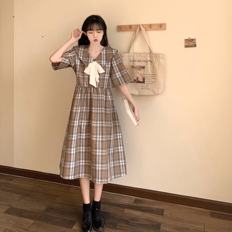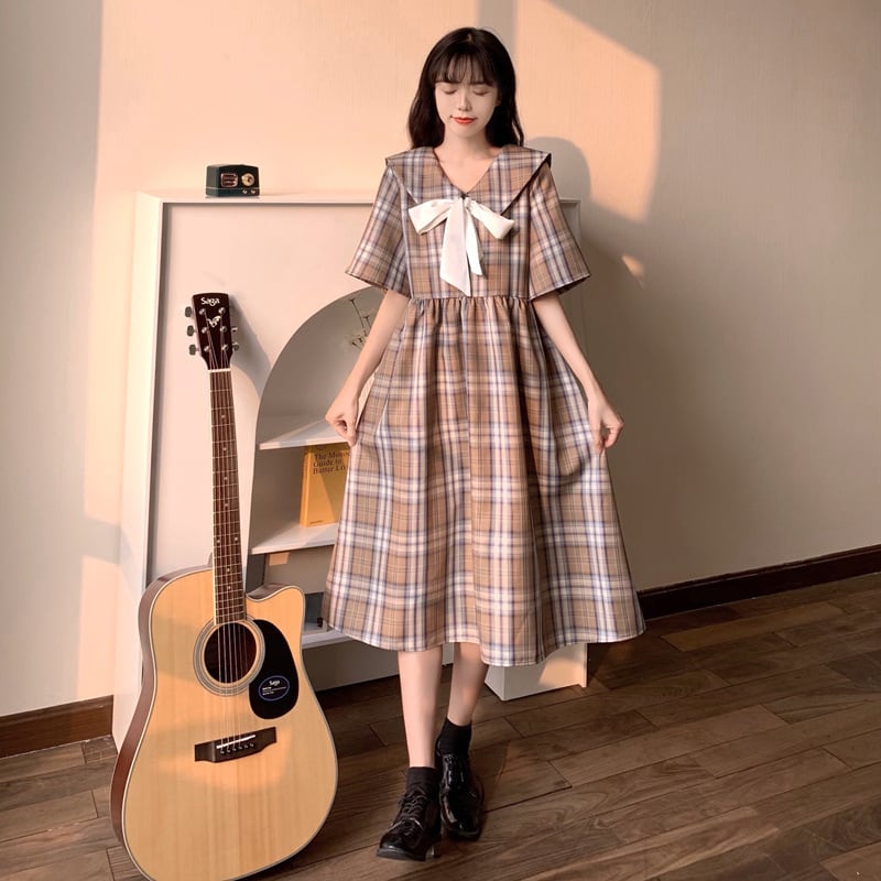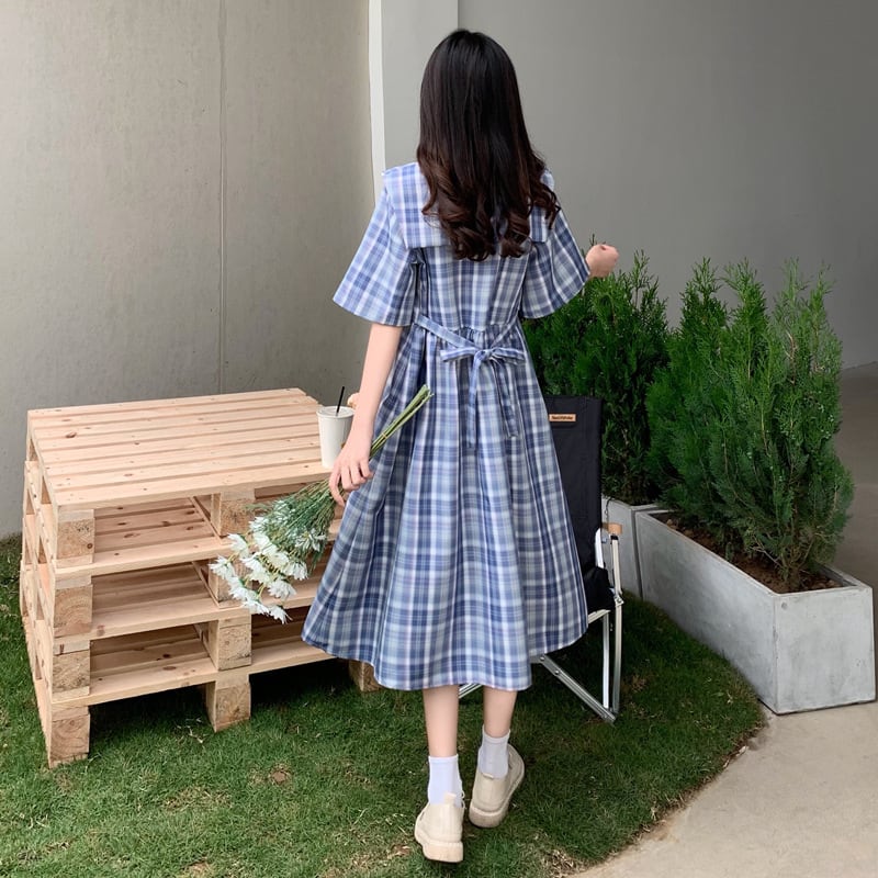 【 国内発送 d211 】大きいサイズあり チェッカ柄セーラーワンピース ワンピース チェック 半袖 ガーリー 可愛い カジュアル