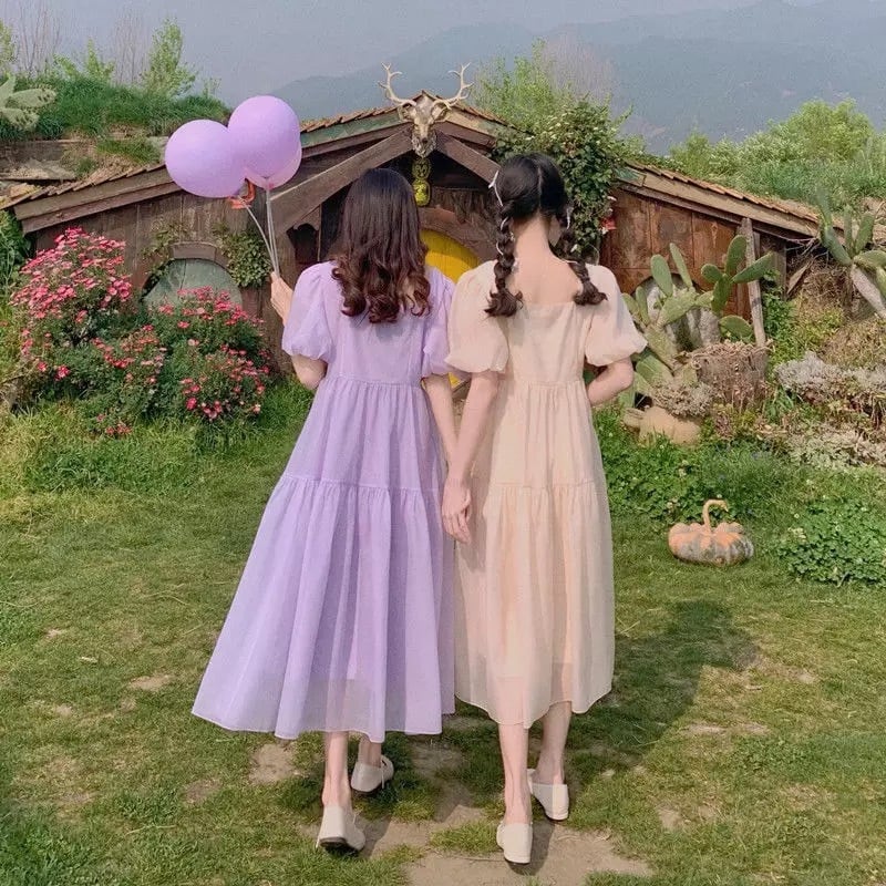 バックスタイルはシンプルで可愛すぎないワンピースになっております。