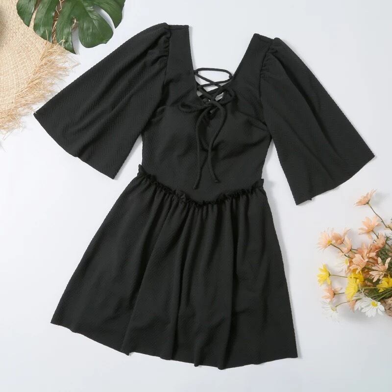 【 国内発送 2021水着033 】大きいサイズ 5分丈ワンピース水着 体型カバー水着 水着 ワンピース水着 二の腕カバー
