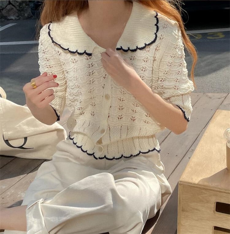 【 国内発送 t140 】透かしニットトップス サマーニット ニット 透け感 ポロシャツ