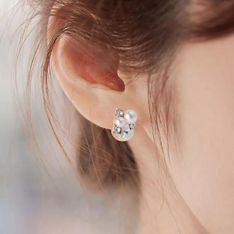 キラキラビジューが上品で可愛いバックキャッチピアス