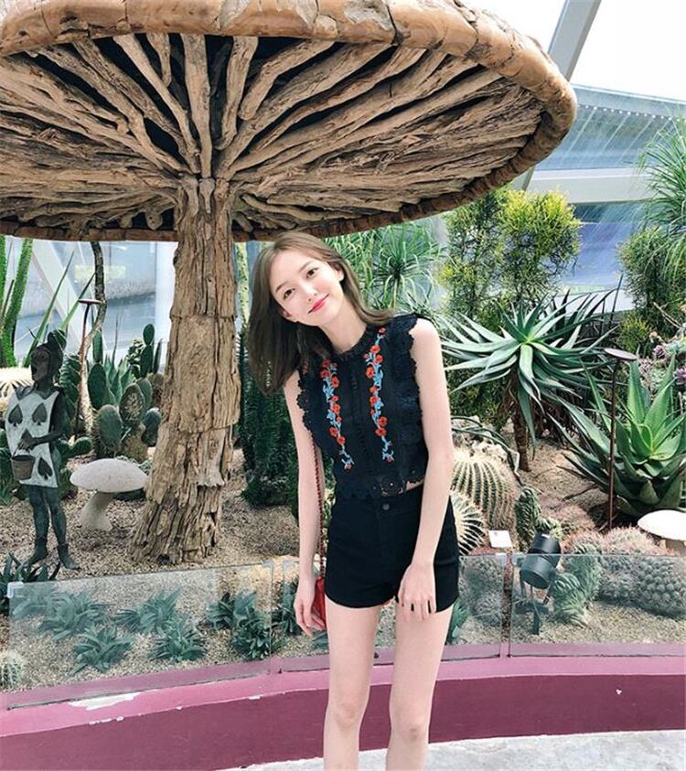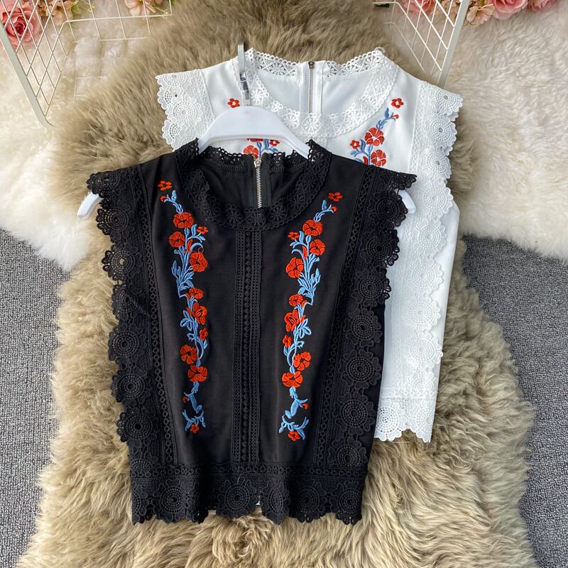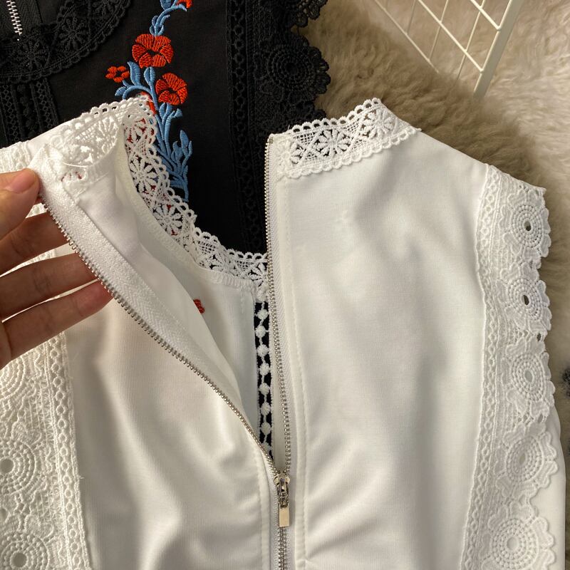 【 国内発送 t143 】レースノースリーブ刺繍ブラウス ノースリーブブラウス レース 刺繍 ホワイト ブラック