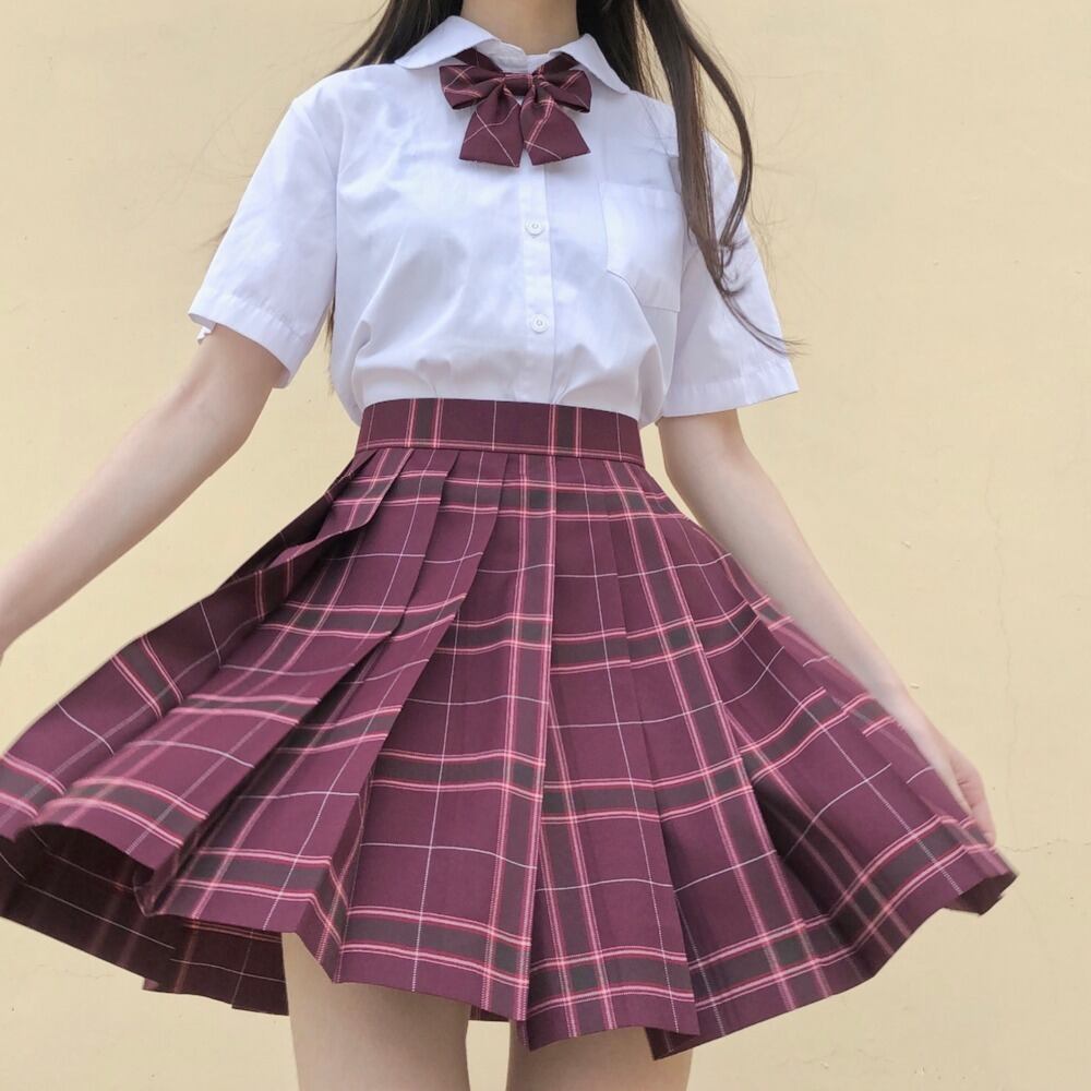 【 国内発送 c024 】エネルギッシュブラウス制服セット ブラウス スカート リボン 制服 セット レッド 赤 推しカラー