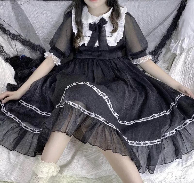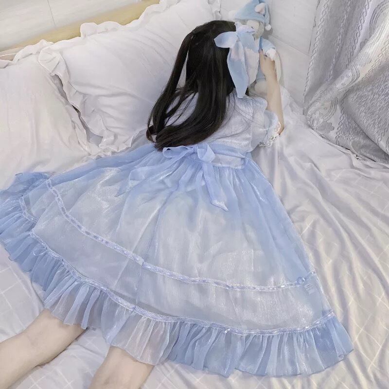 【 国内発送 d222 】シアーシースルーワンピース ガーリー ワンピース ひざ丈 ロリータ