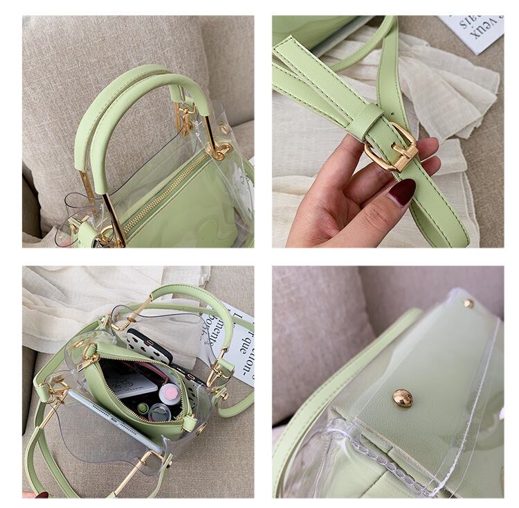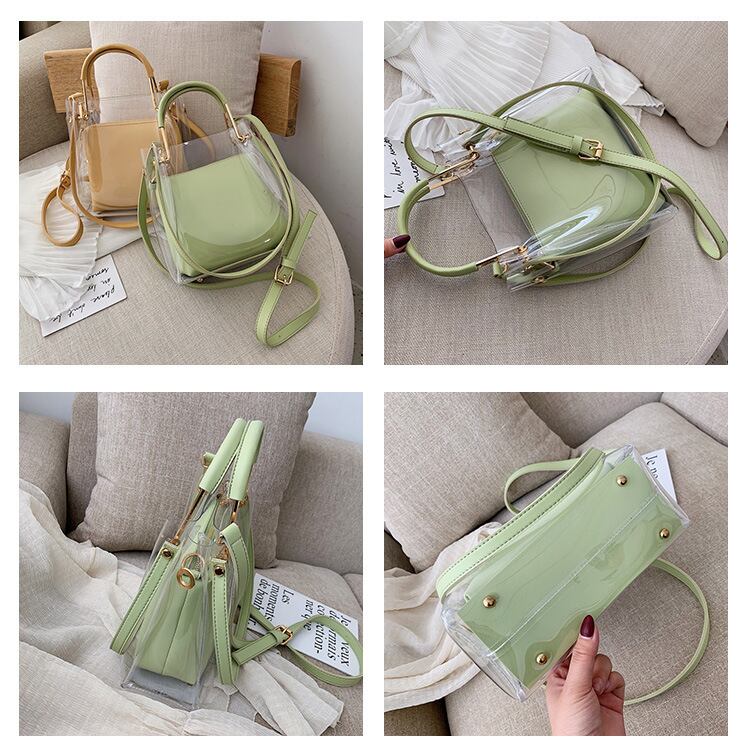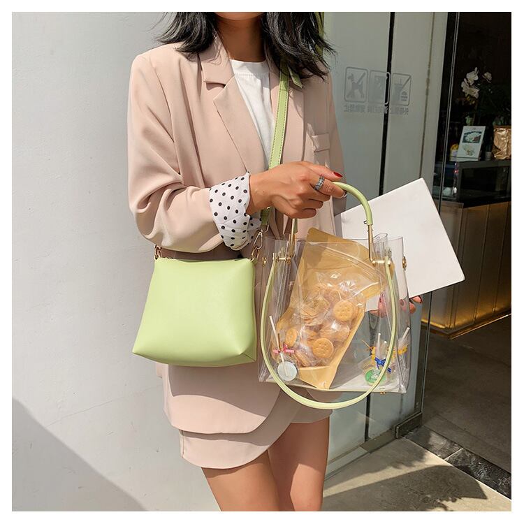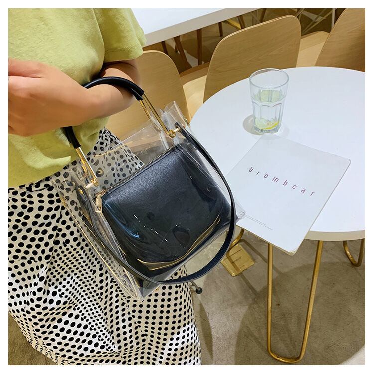 これからの季節に欠かせないポーチ付きの2点セットのPVCショルダーバッグ。